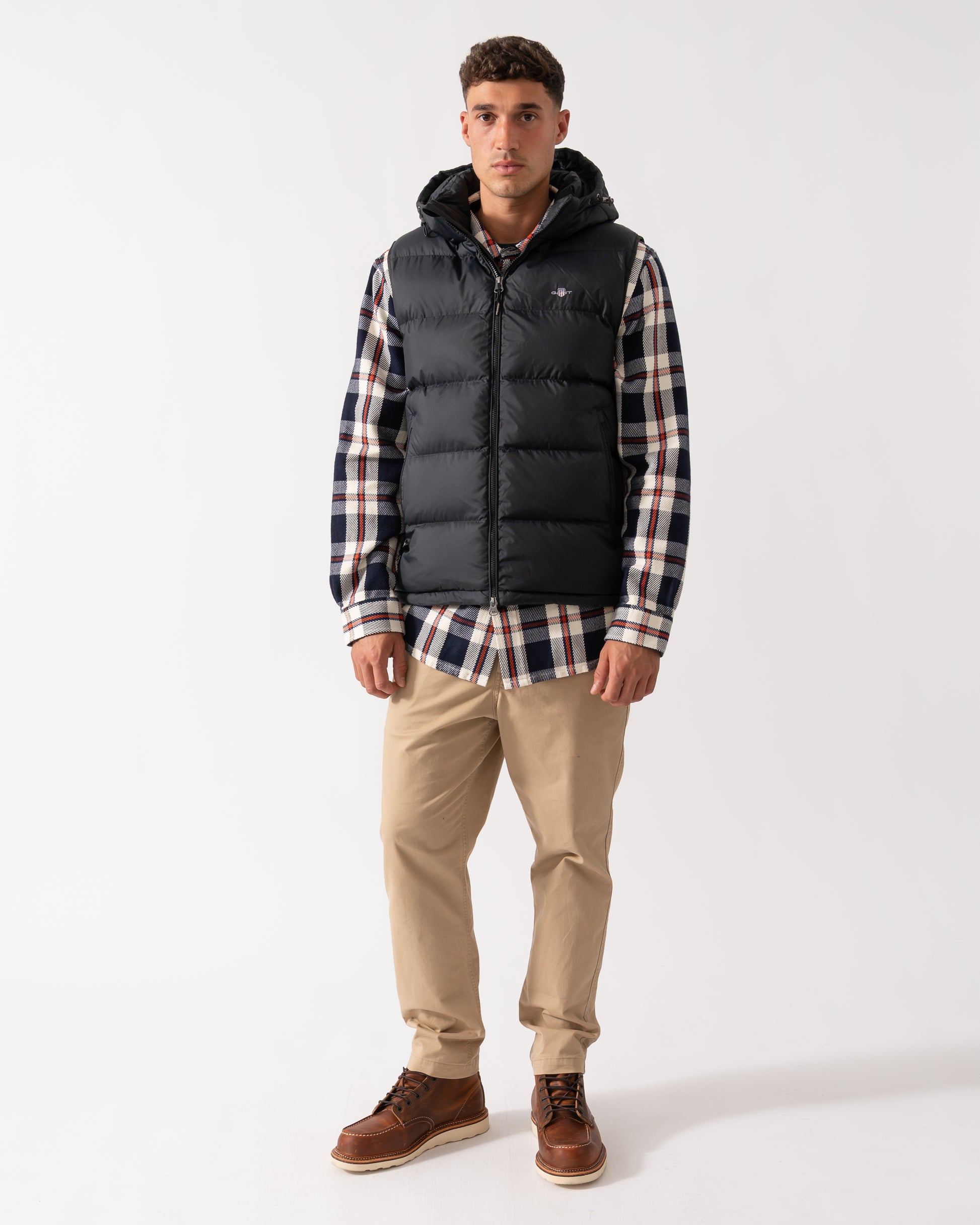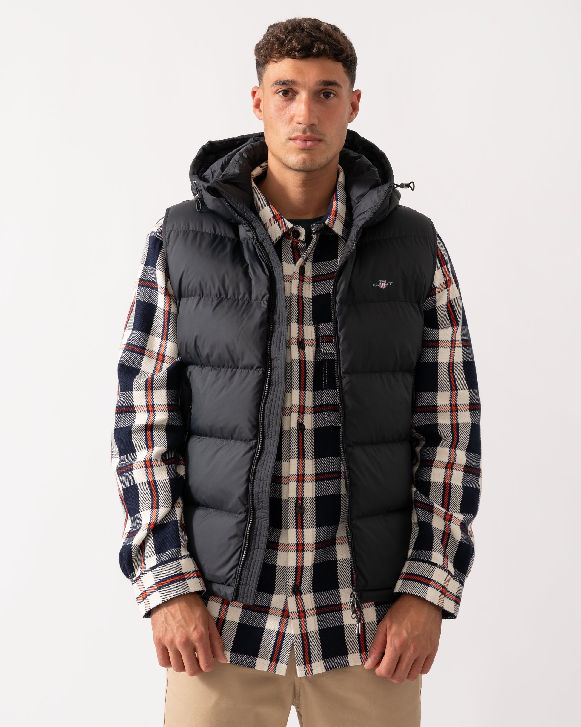 Ideal for days spent outdoors, the Active Cloud Vest from GANT is designed with a regular fit and hip-length cut. Treated with a water-repellent finish, it help protect against the elements. With a puffer vest design, it features a fully lined padded interior for warmth, a detachable hood, and slanted side zip pockets for convenience. The vest is completed with a sleek front zip closure and a GANT shield graphic at the chest for a stylish touch. This product is made with recycled polyester, aligned with GANT's sustainability strategy to support circularity.
