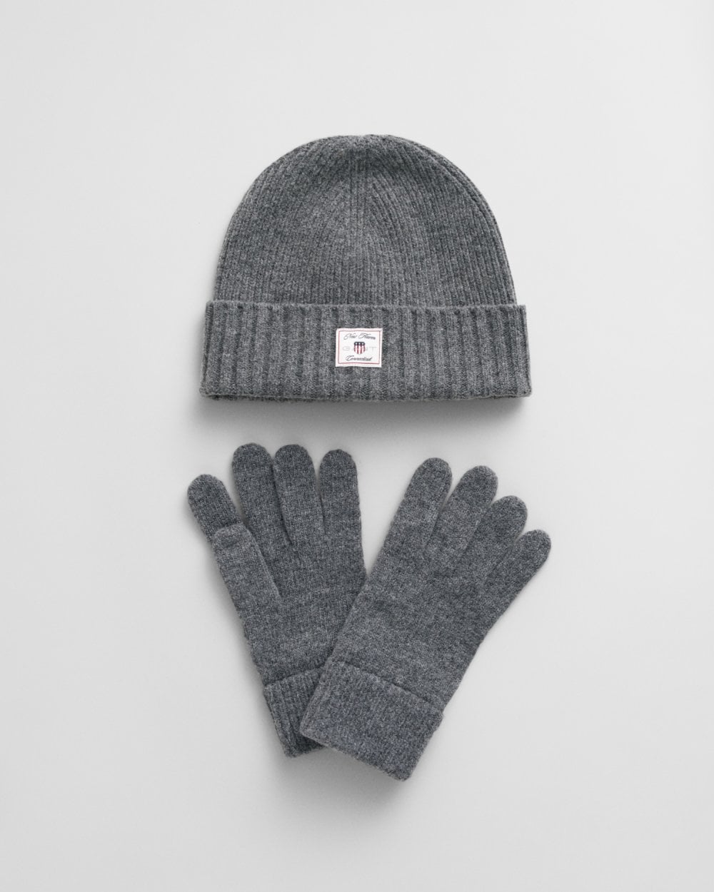 GANT Mens Beanie & Gloves Gift Set in 90 Charcoal Melange