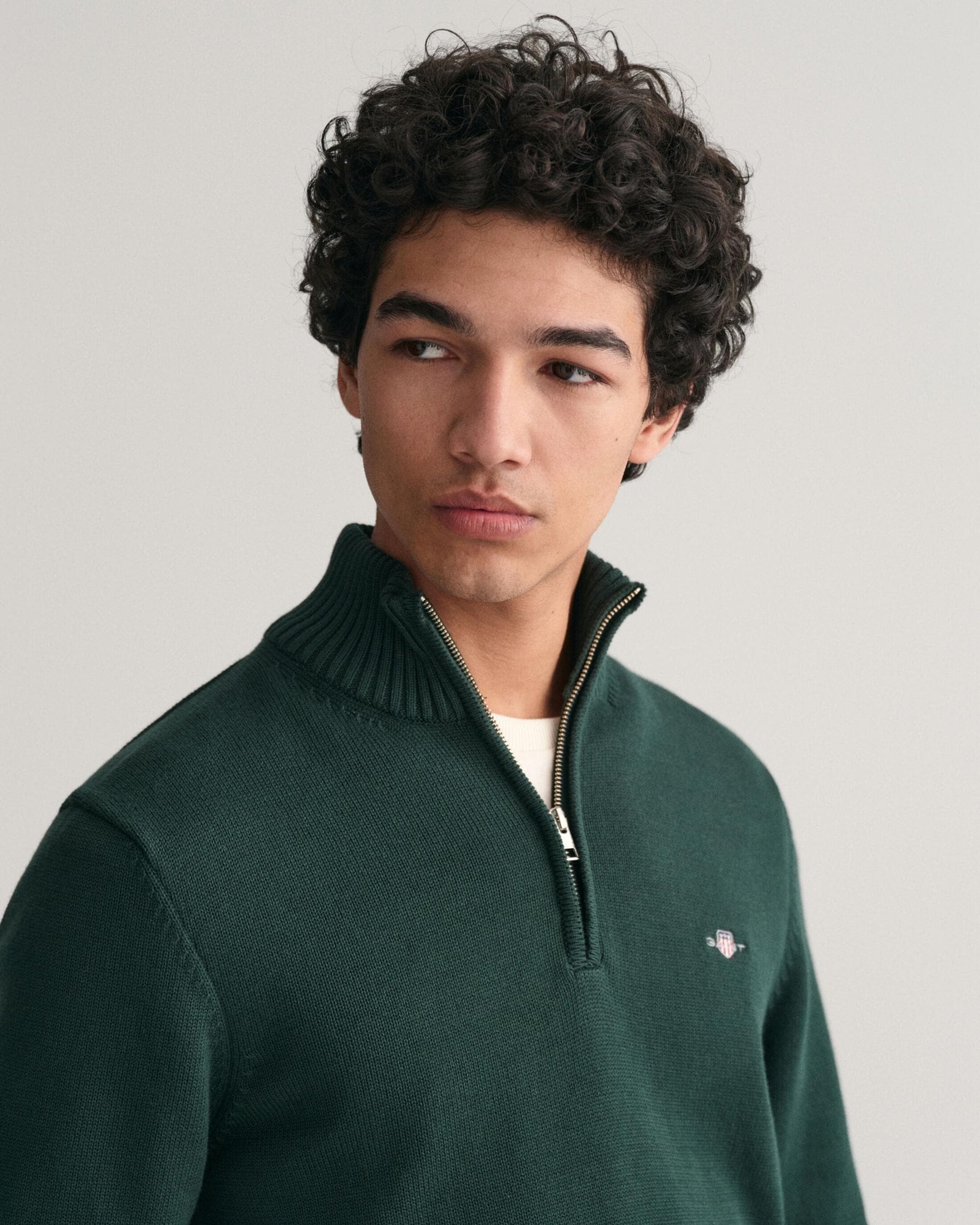 Crafted in medium-weight cotton and cut in a regular fit, this half-zip sweater features a GANT shield graphic embroidered at the chest. This sweater is the perfect layering piece for all season long.