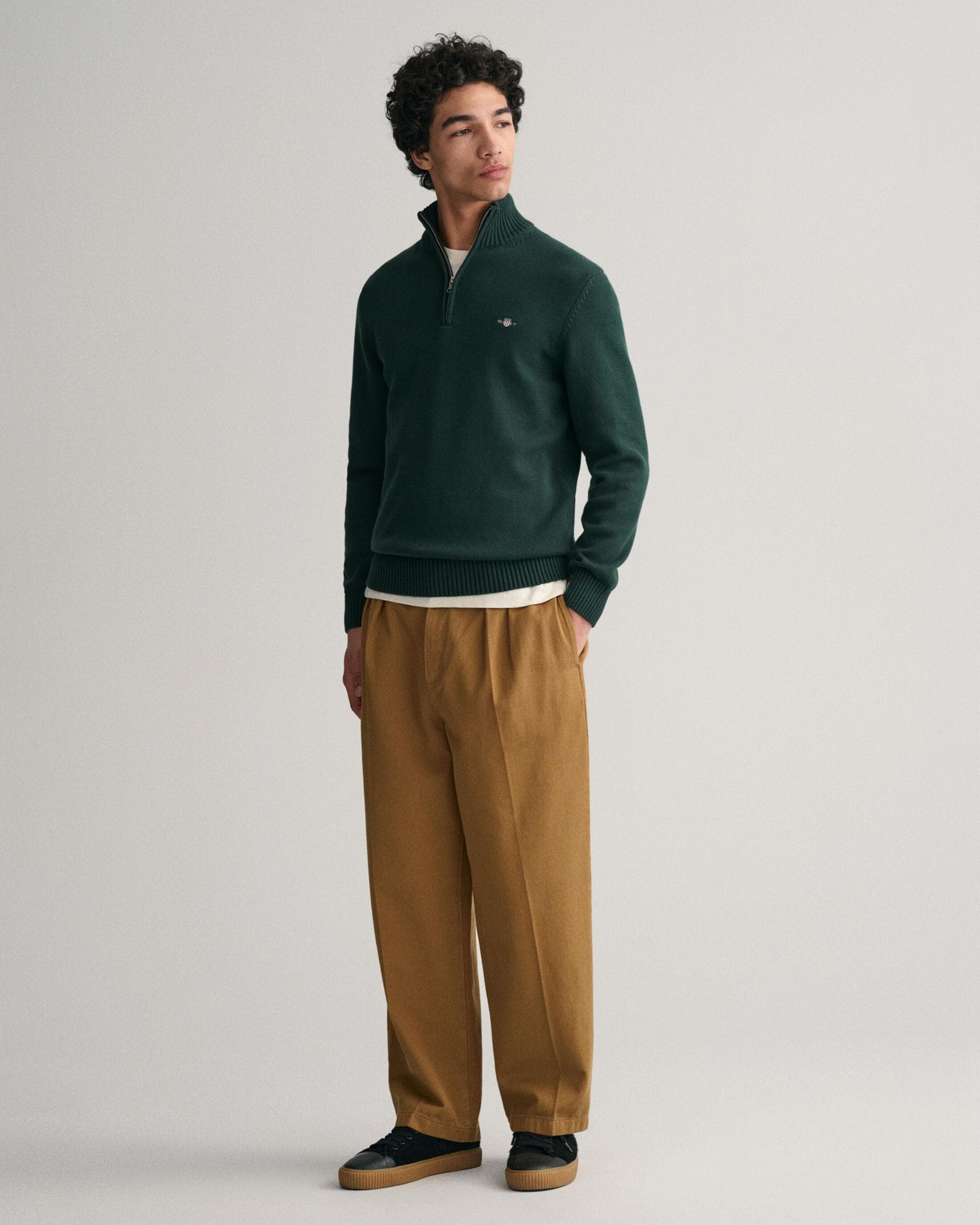 GANT Mens Casual Cotton Half Zip Jumper in 374 Tartan Green