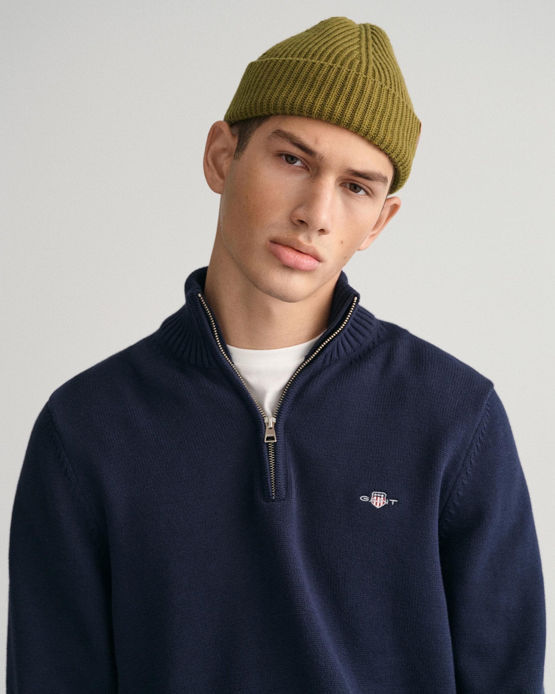 GANT Mens Casual Cotton Half Zip Jumper in 433 Evening Blue