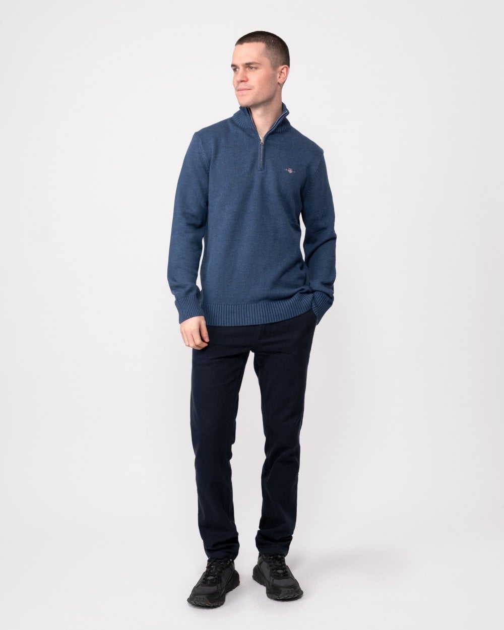 GANT Mens Casual Cotton Half Zip Jumper in 902 Dark Jeansblue Melange