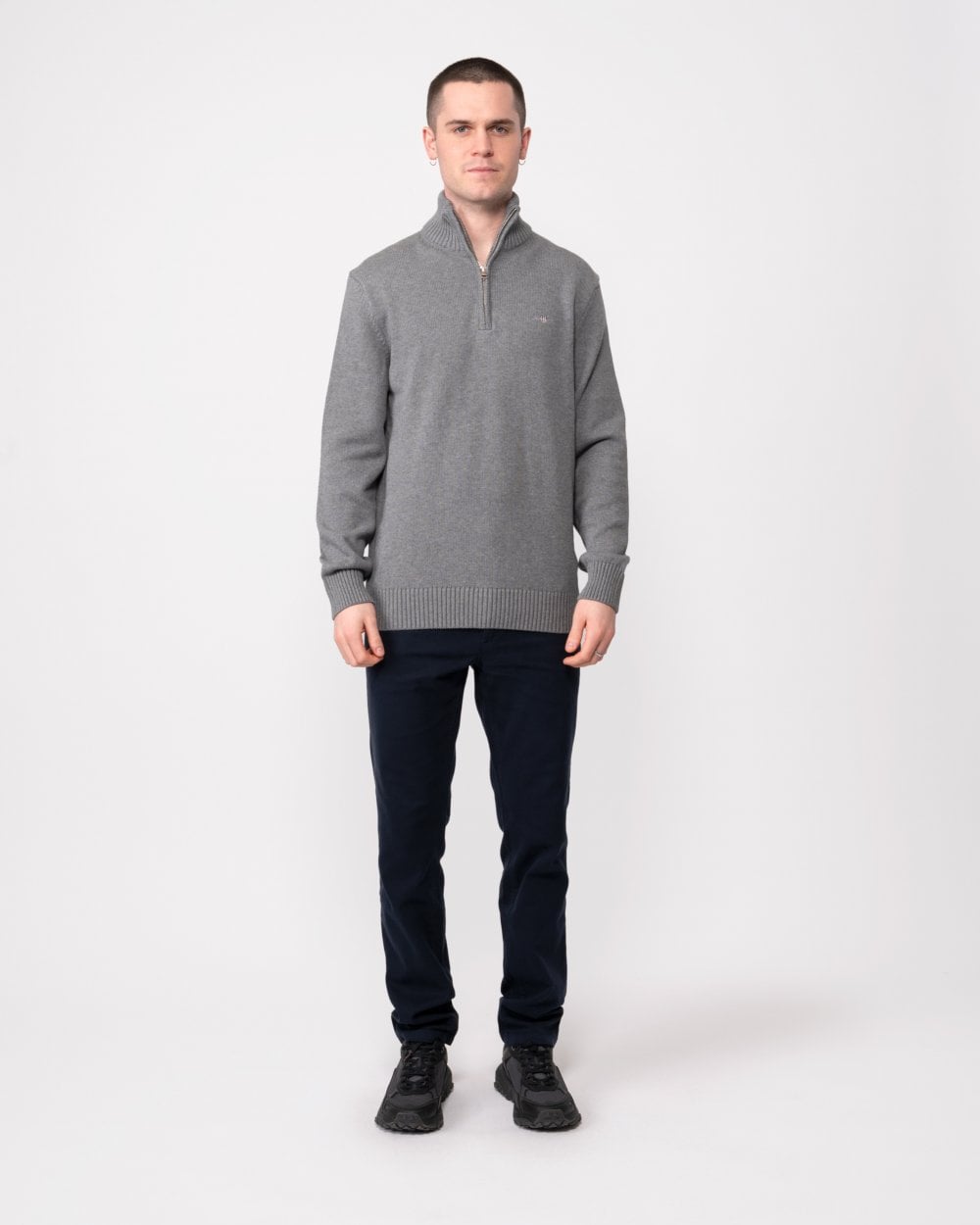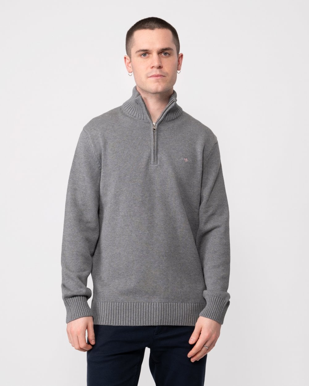 GANT Mens Casual Cotton Half Zip Jumper in 92 Dark Grey Melange
