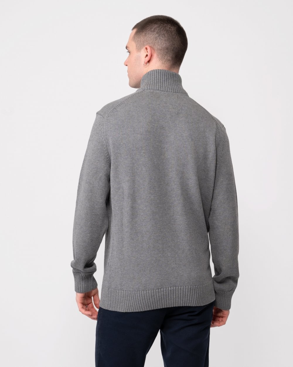 Mens Casual Cotton Half Zip Jumper - 92 Dark Grey Melange
