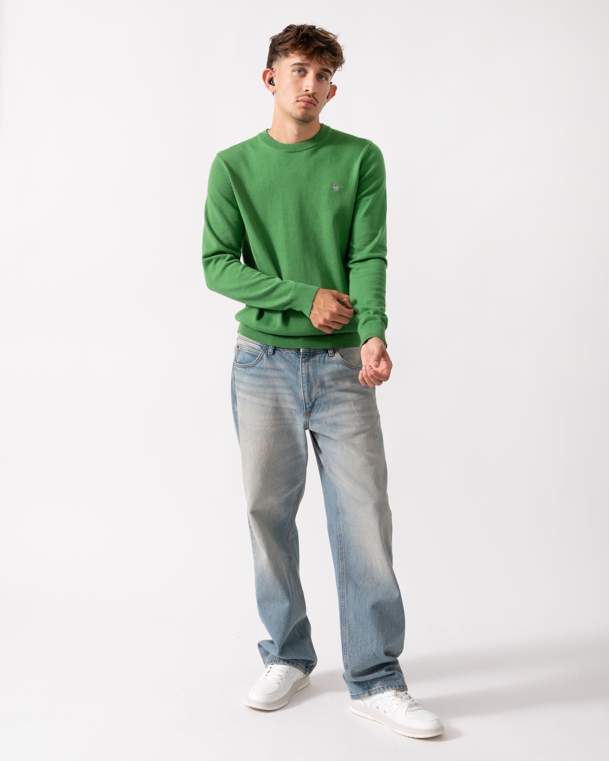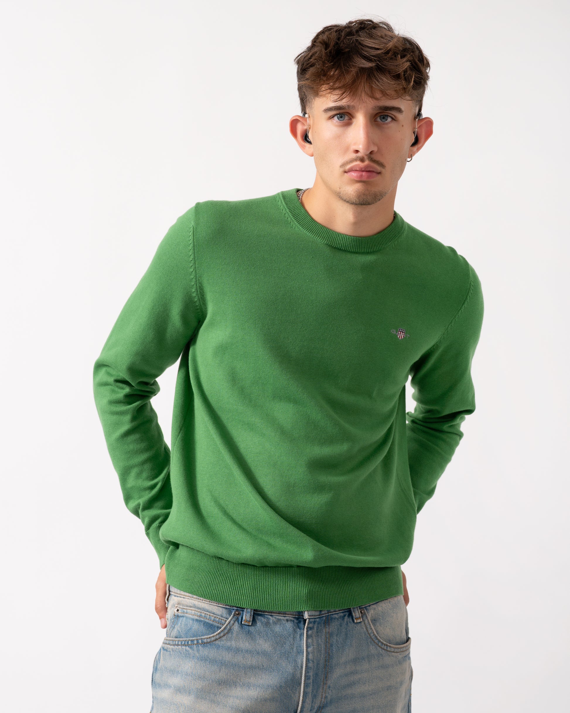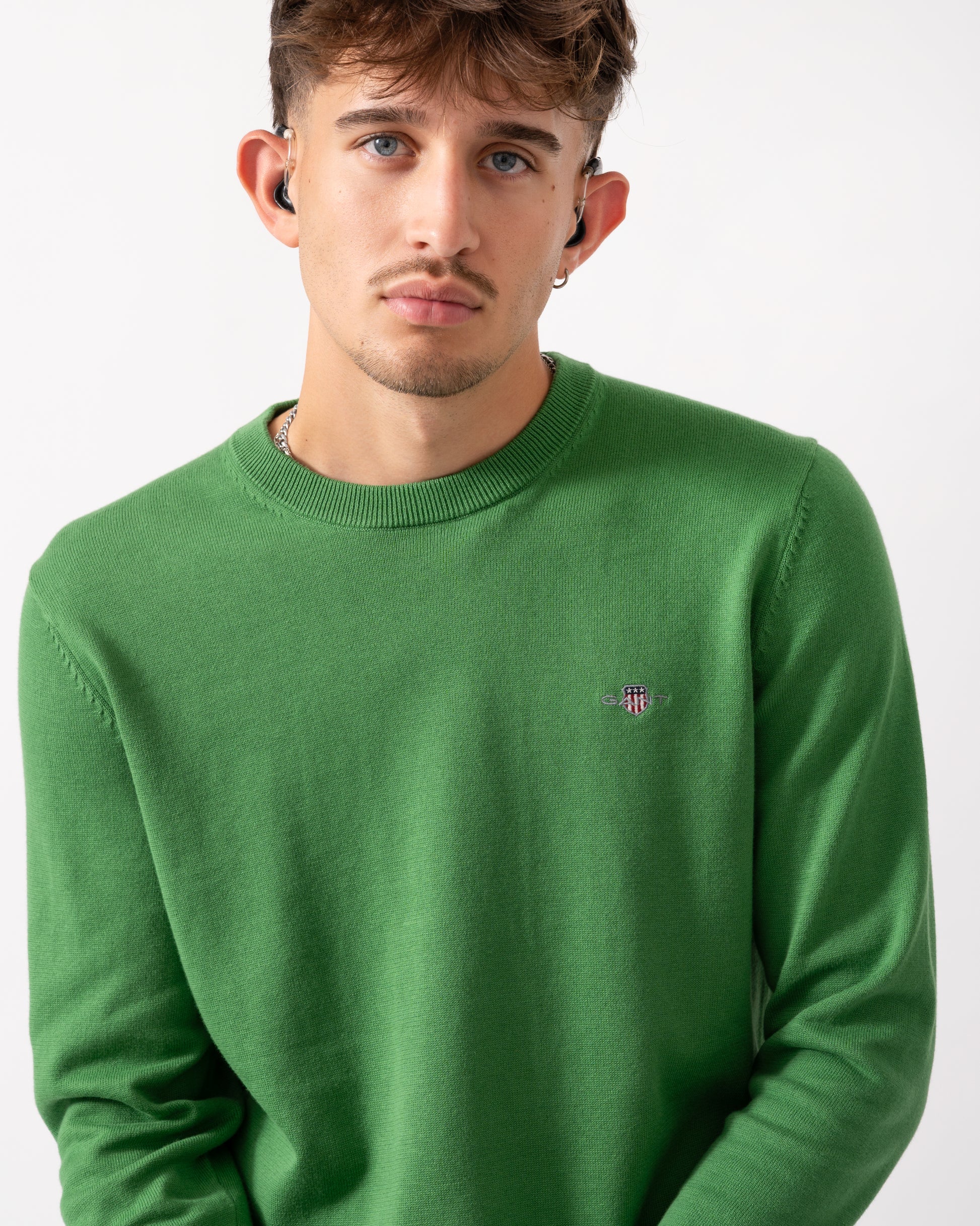 GANT Mens Classic Cotton Crew Neck Jumper - 362 Kalamata Green - 362 Kalamata Green