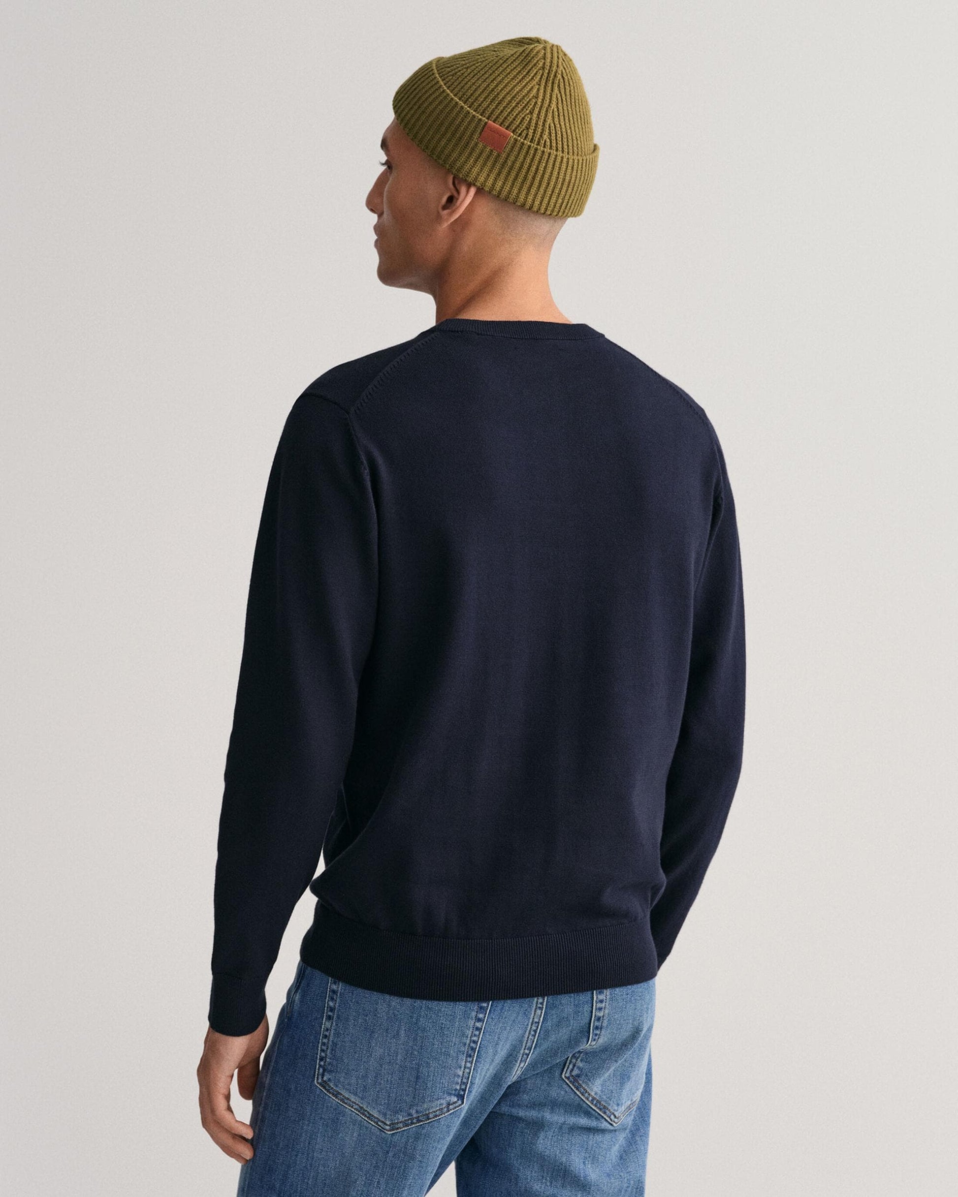 GANT Mens Classic Cotton Crew Neck Jumper in 433 Evening Blue