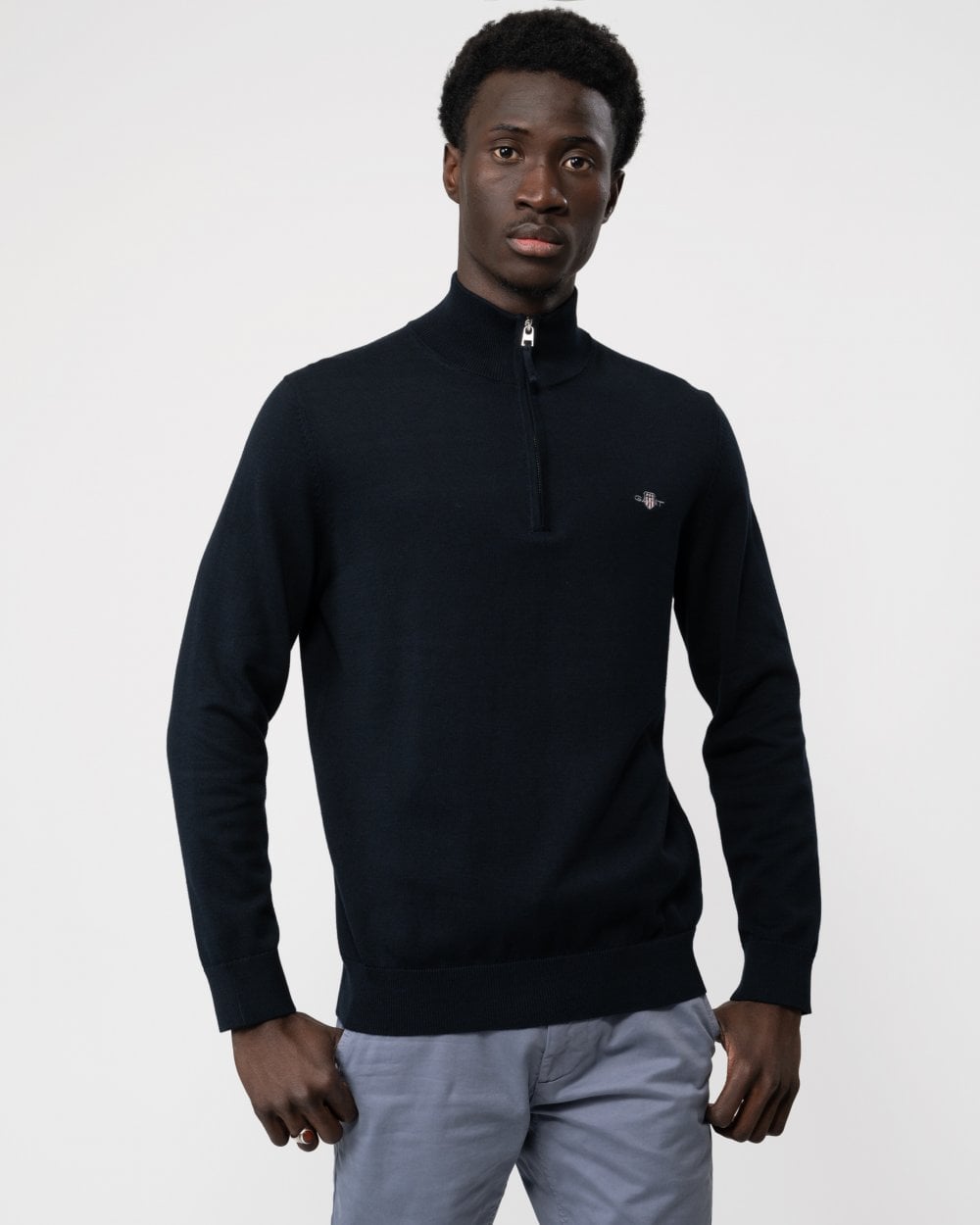 Crafted in cotton and cut in a regular fit, this sweater features a half-zip collar, ribbed detailing and a GANT shield graphic embroidered at the chest.