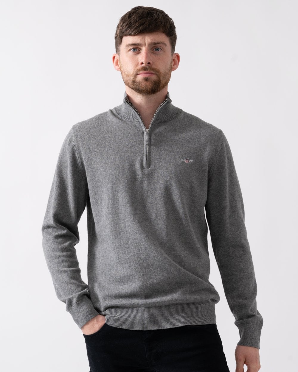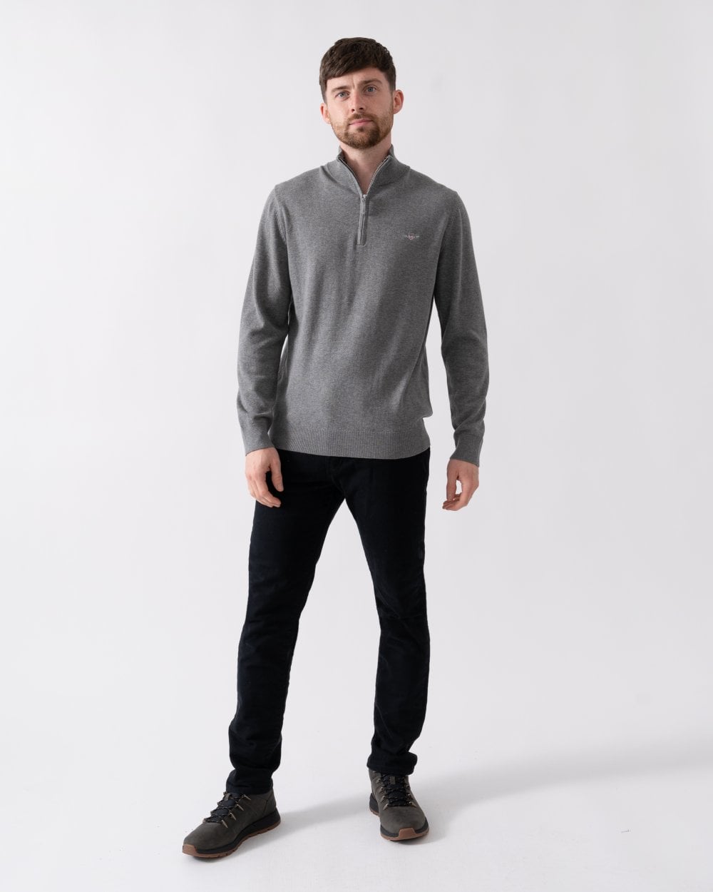 GANT Mens Classic Cotton Half Zip Jumper in 92 Dark Grey Melange