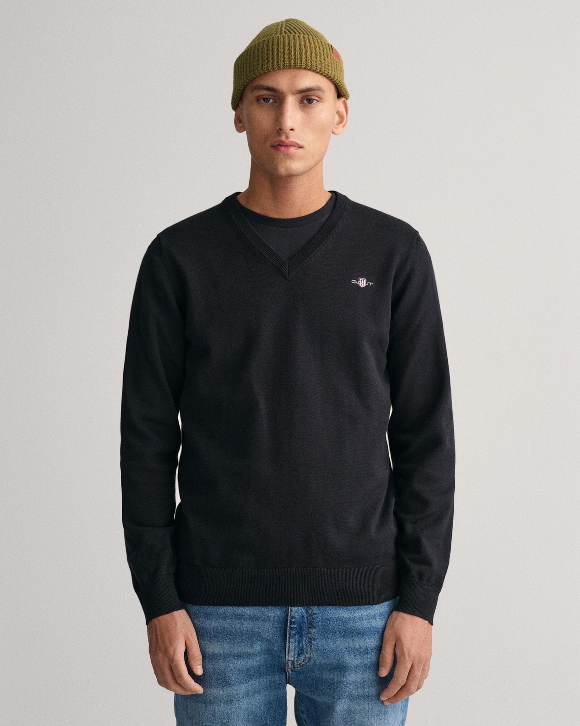 GANT Mens Classic Cotton V-Neck Jumper in 5 Black