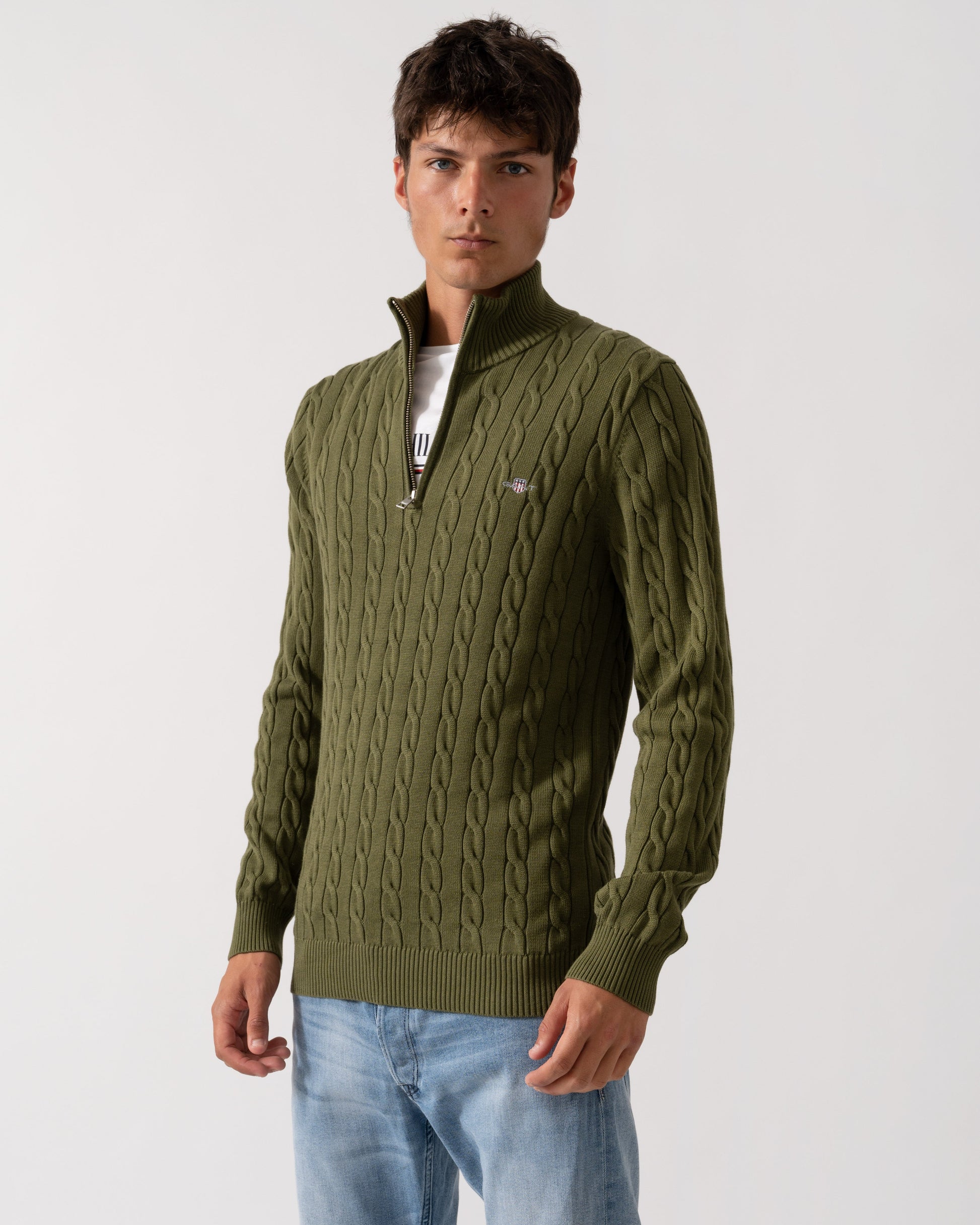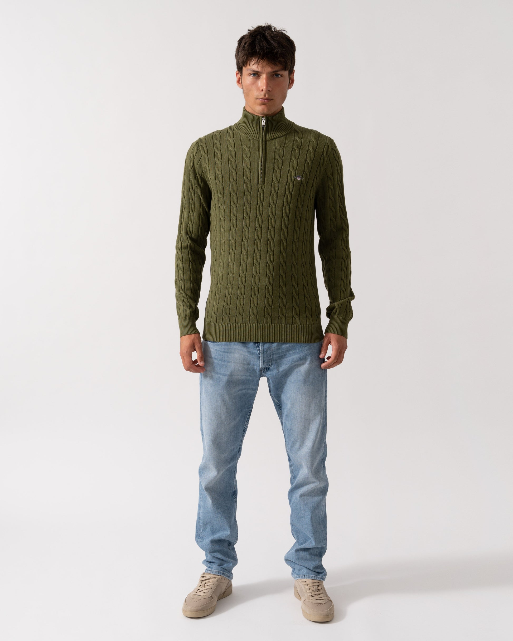 GANT Mens Cotton Cable Half Zip Jumper in 303 Moss Green