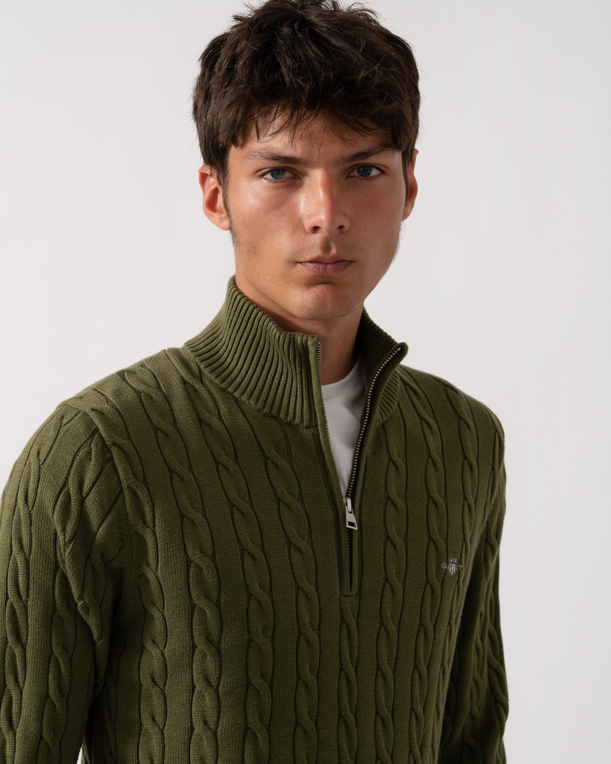 Designed in cotton with an all-over cable knit structure, this soft sweater has a regular fit and a half-zip collar. A preppy essential, it is detailed with our iconic GANT Archive shield graphic embroidered at the chest and features ribbed endings at the neck, hem and cuffs.