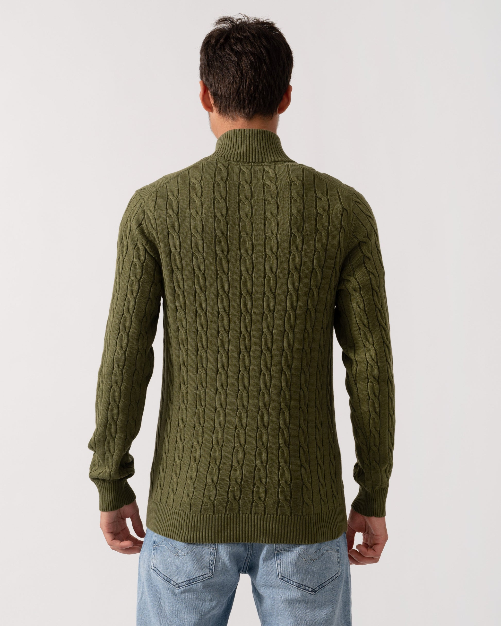 Mens Cotton Cable Half Zip Jumper - 303 Moss Green