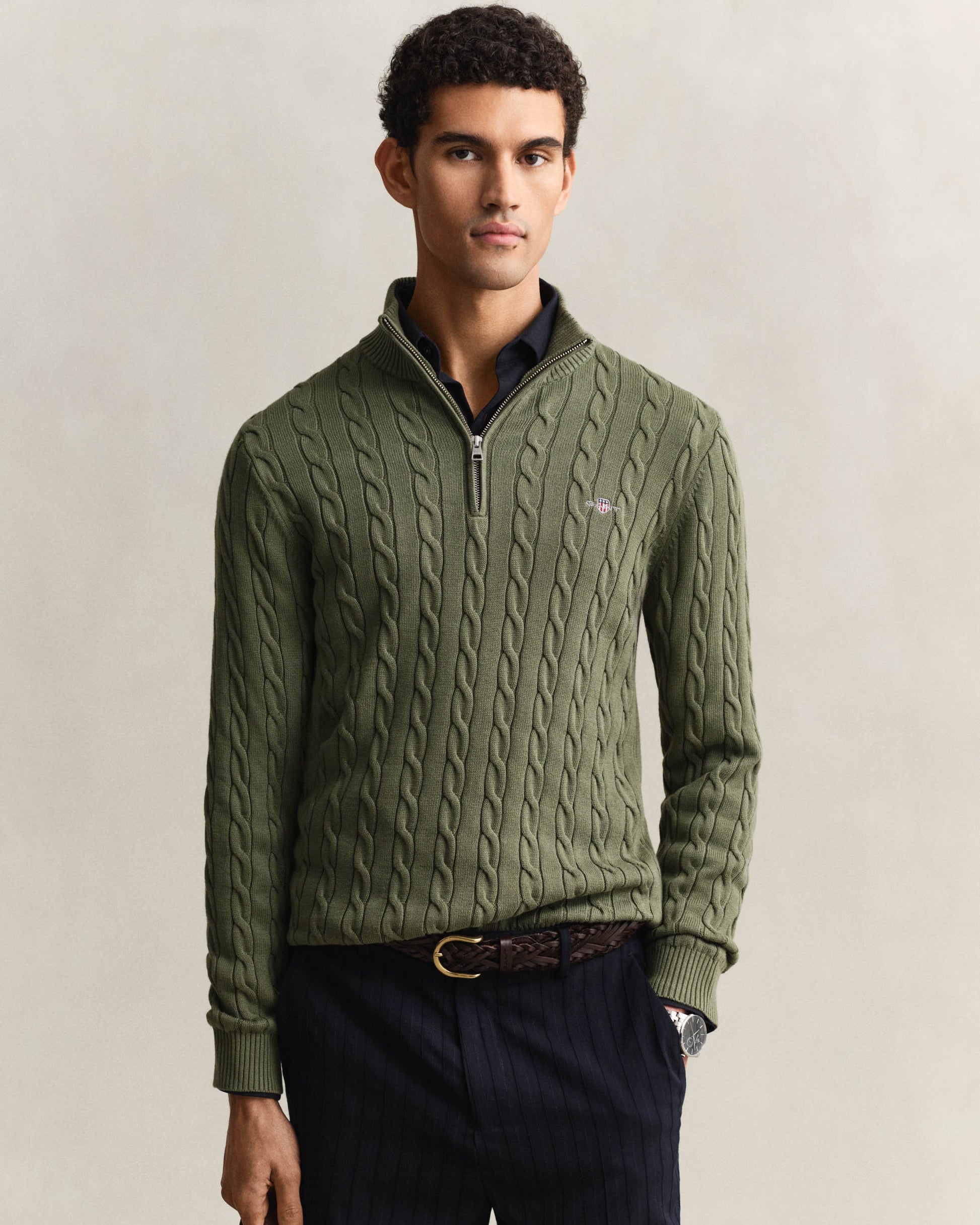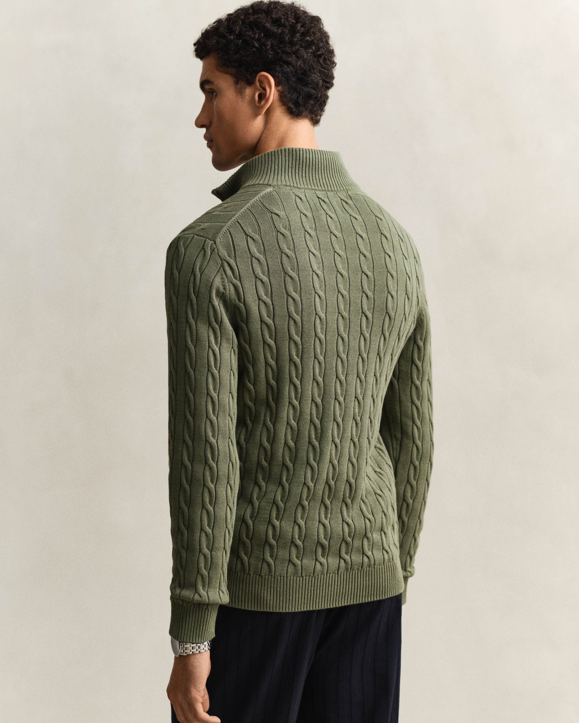 Mens Cotton Cable Half Zip Jumper - 379 Dry Herb Green