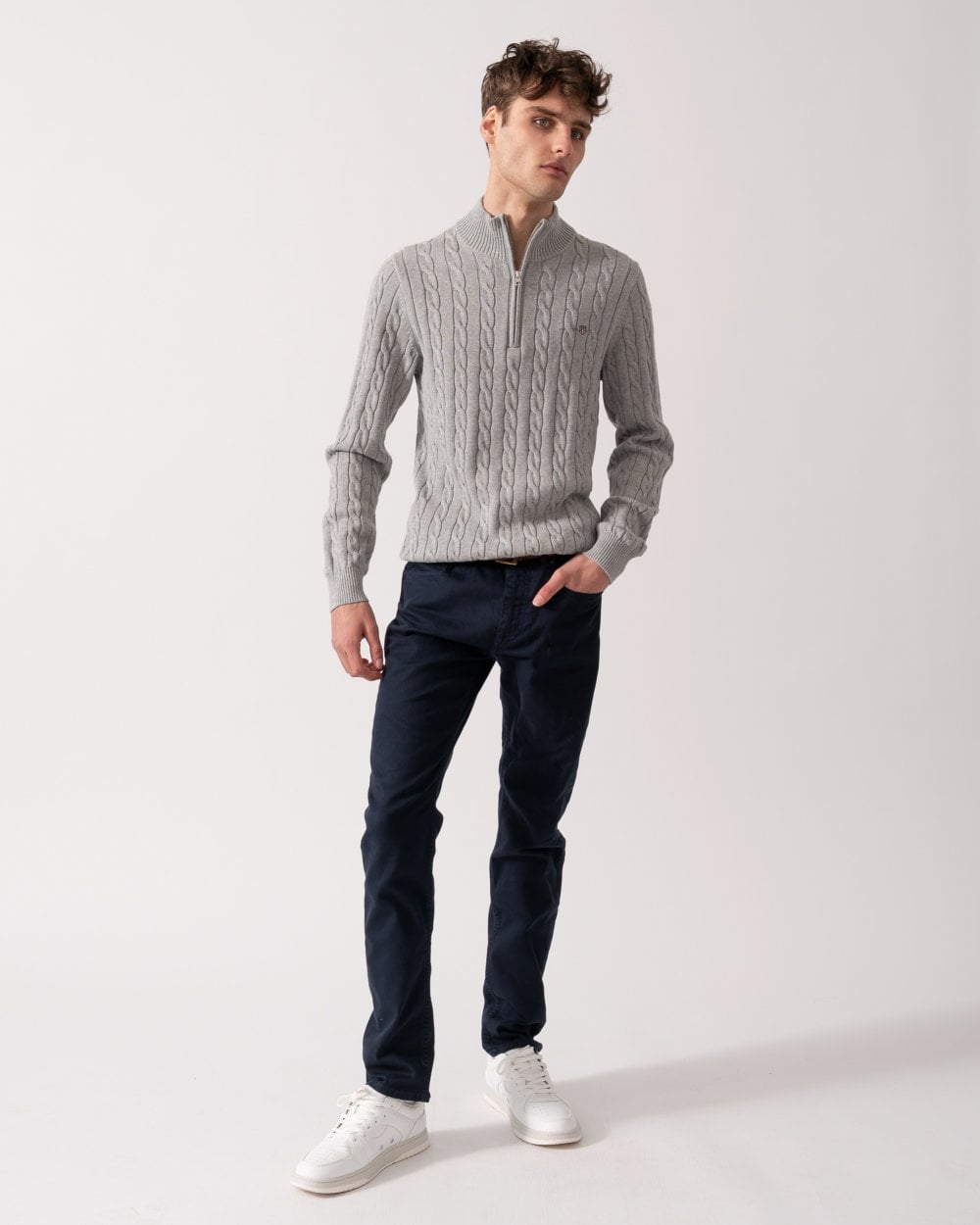 Designed in cotton with an all-over cable knit structure, this soft sweater has a regular fit and a half-zip collar. A preppy essential, it is detailed with our iconic GANT Archive shield graphic embroidered at the chest and features ribbed endings at the neck, hem and cuffs.