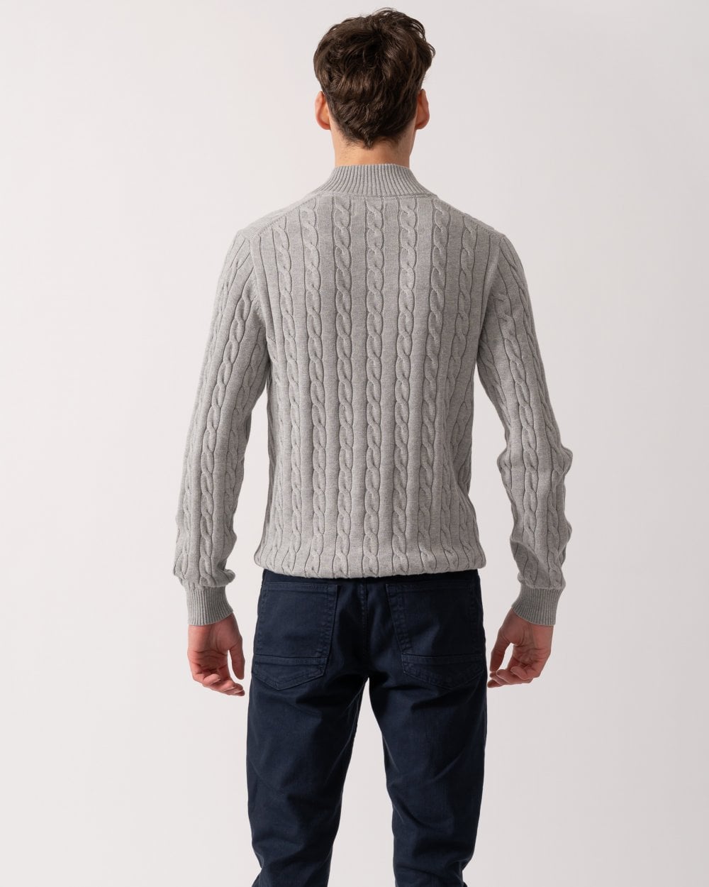 Mens Cotton Cable Half Zip Jumper - 93 Grey Melange