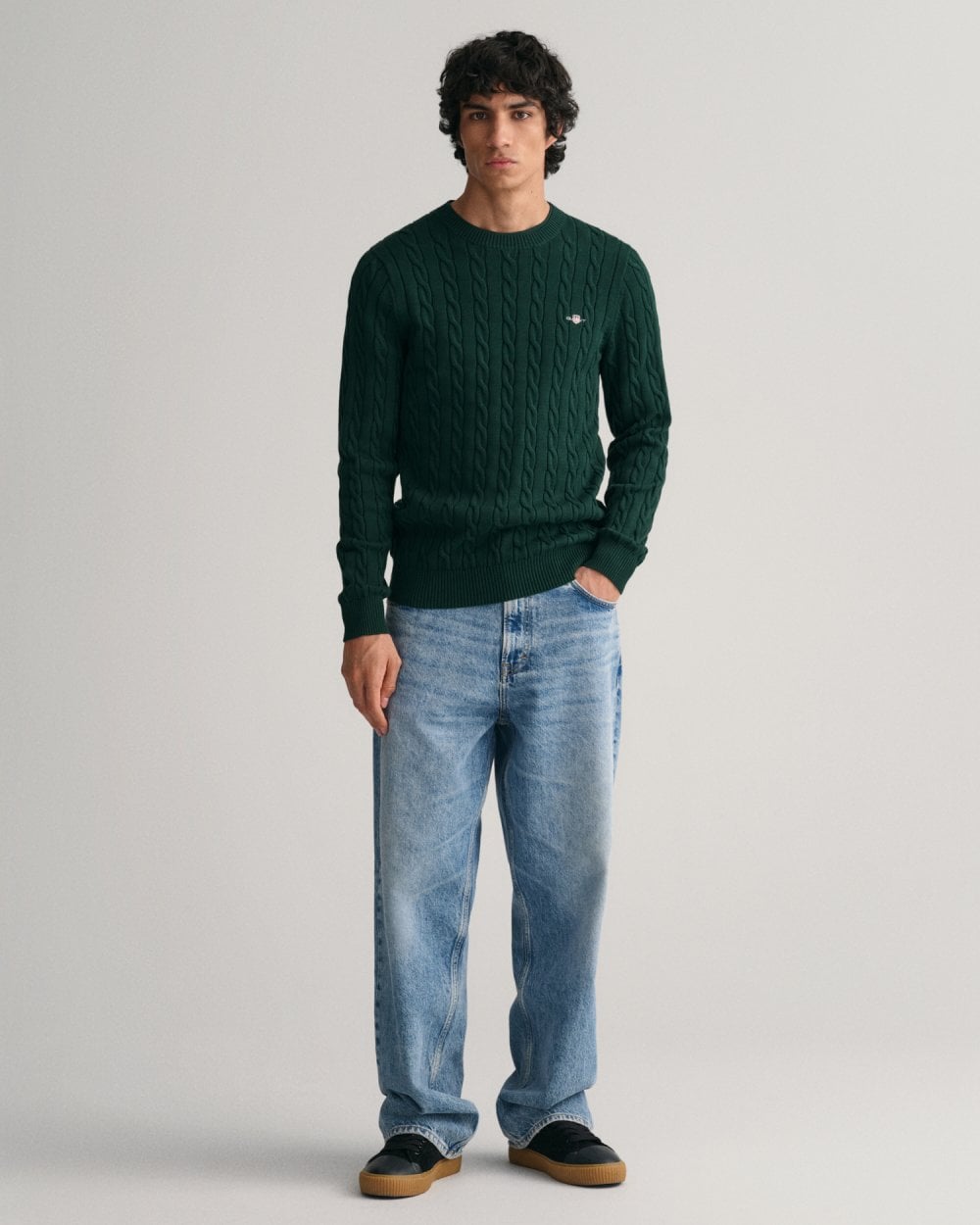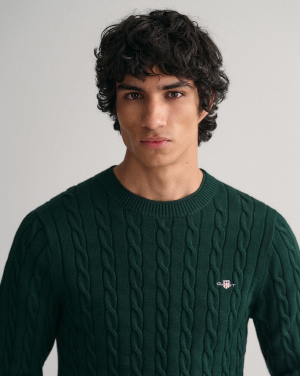 Designed in cotton with an all-over cable knit structure, this soft sweater has a regular fit and classic crew neck. A preppy essential, it is detailed with our iconic GANT Archive shield embroidered at the chest, and ribbed endings at the neck, hem and cuffs.