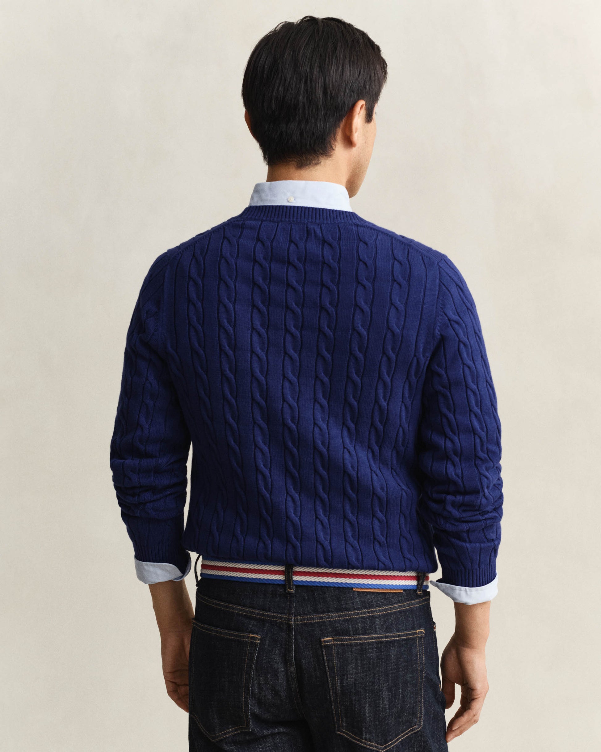 Mens Cotton Cable Knit Crew Neck Jumper - 432 Rich Navy