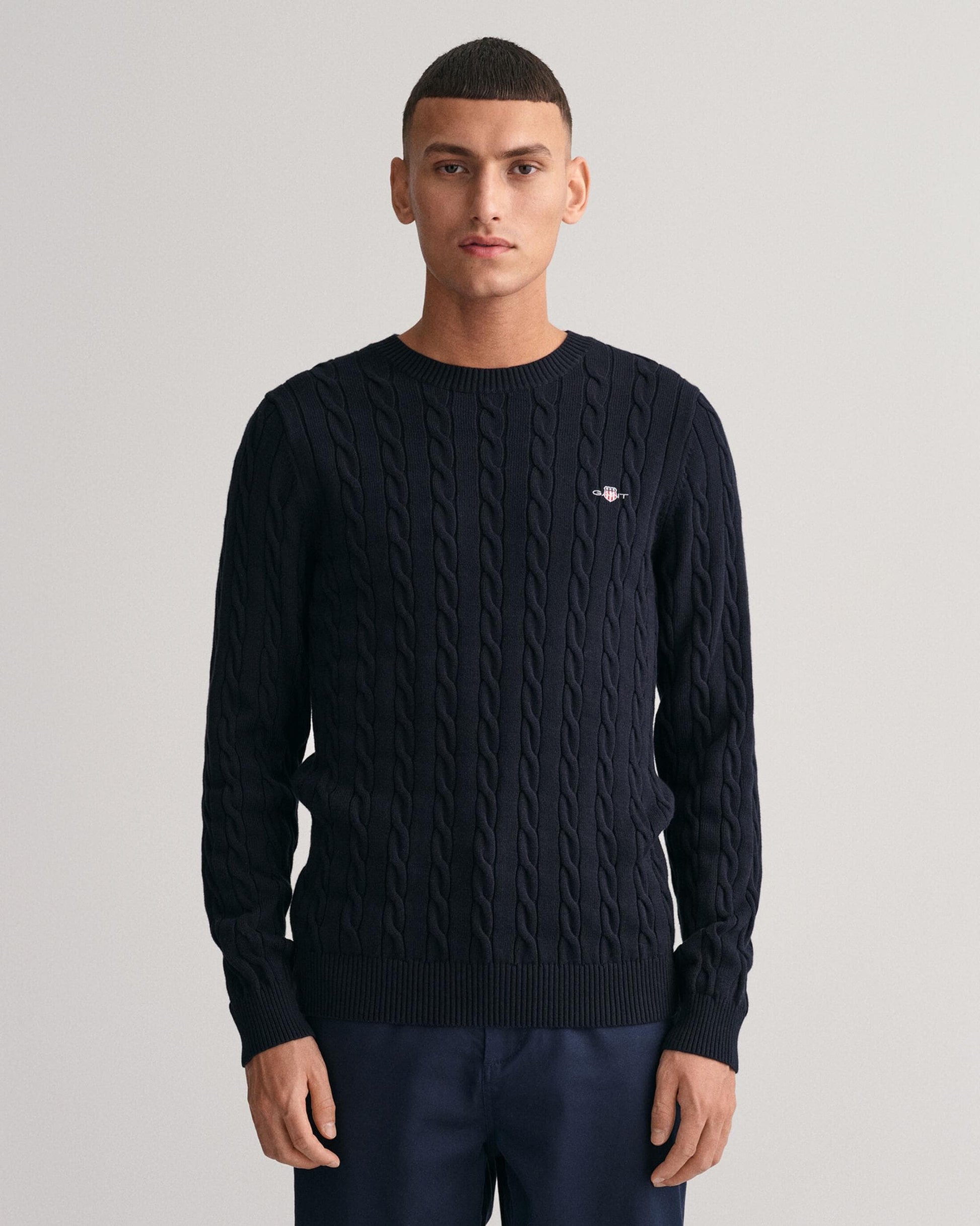 Designed in cotton with an all-over cable knit structure, this soft sweater has a regular fit and classic crew neck. A preppy essential, it is detailed with our iconic GANT Archive shield embroidered at the chest, and ribbed endings at the neck, hem and cuffs.