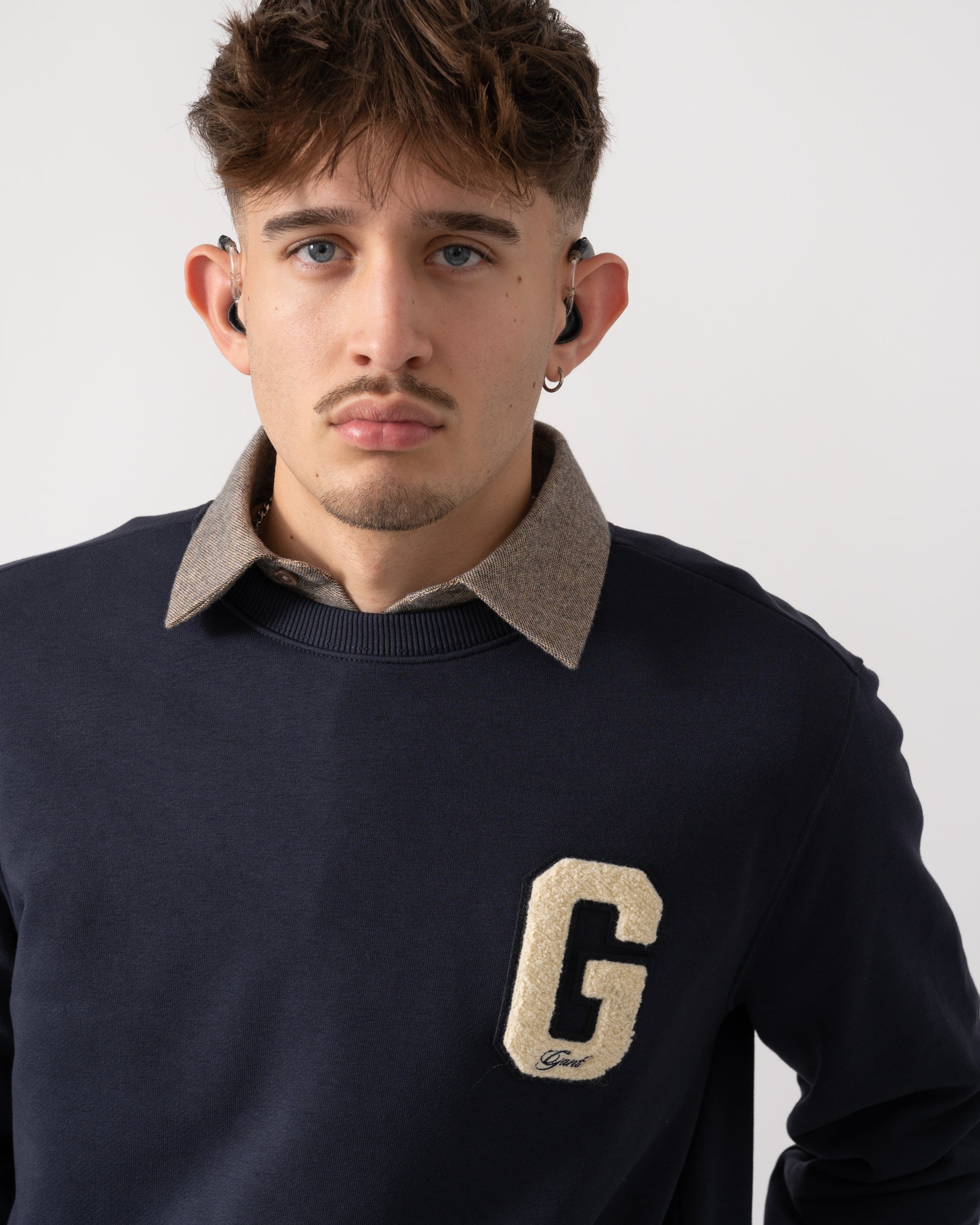 Mens G Badge Crew Neck Sweatshirt - 433 Evening Blue