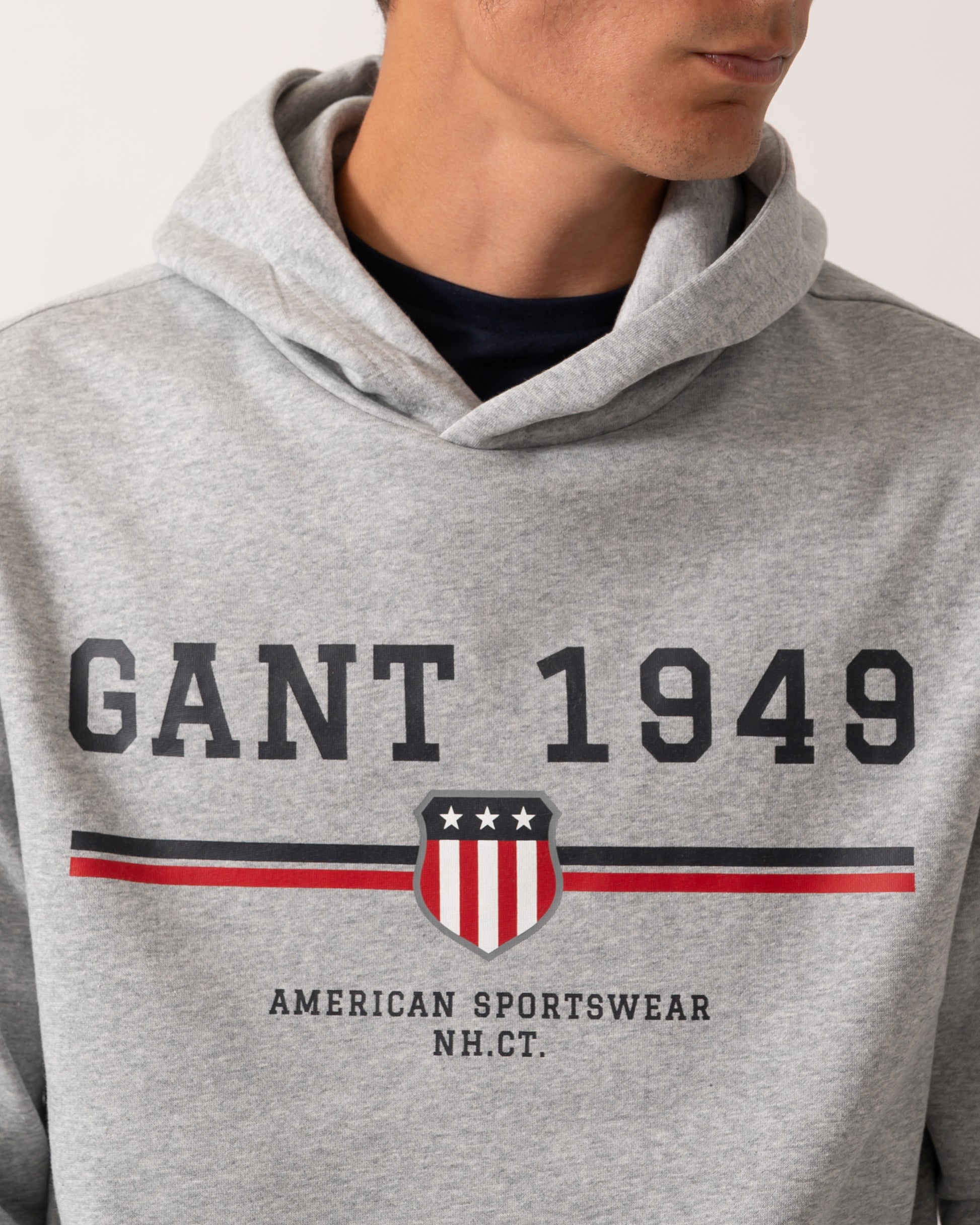 GANT Mens Graphic Pullover Hoodie - 433 Evening Blue - 433 Evening Blue