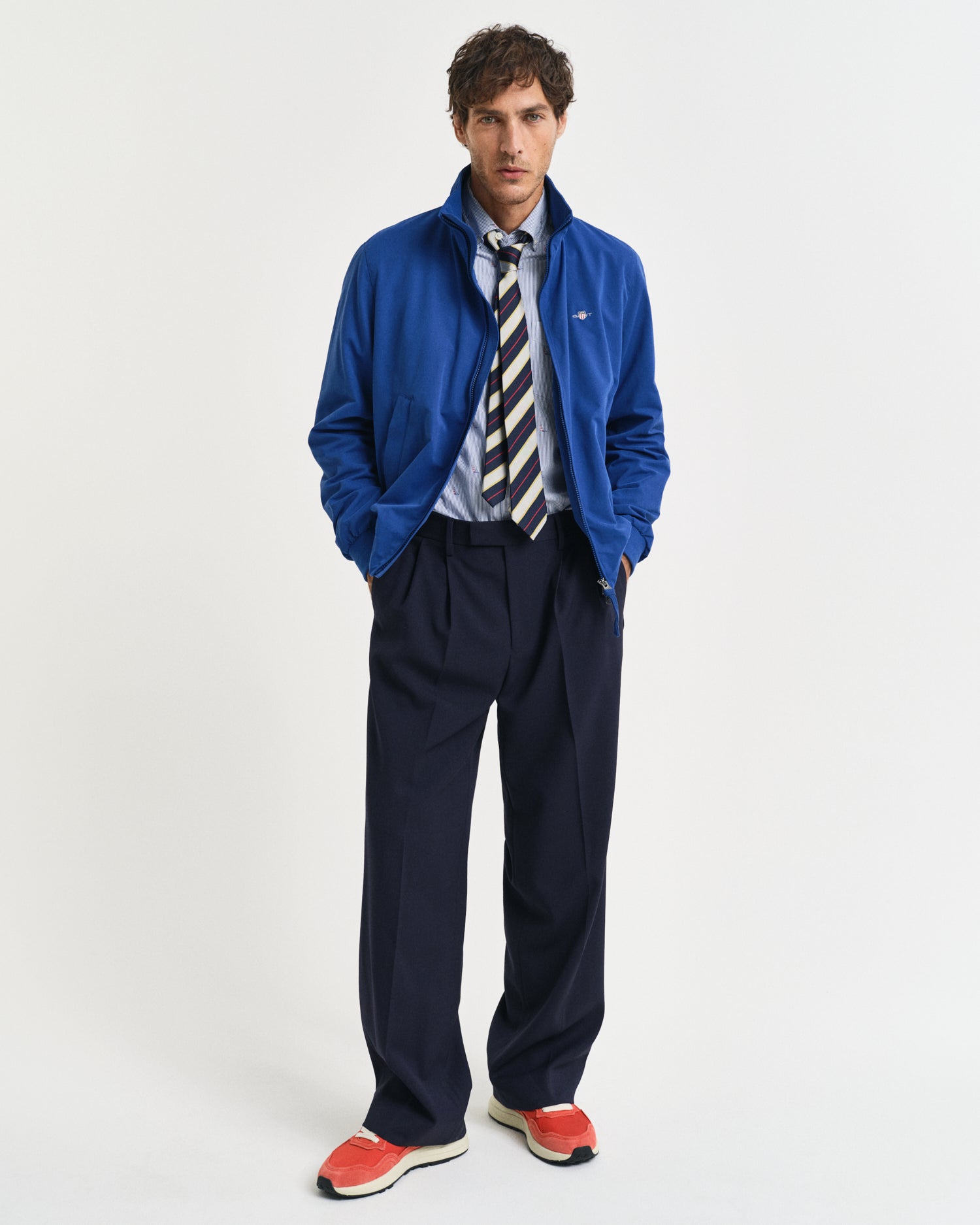 Perfect for transitional weather, the Hampshire Jacket features a lightweight, water-repellent shell made from a recycled polyester-cotton blend. Designed for a regular fit that sits above the hips, it includes a front zip closure and a stand-up collar with inner rib lining. For added practicality, the jacket is equipped with slanted side welt pockets and two interior pockets. It is finished with a GANT logo embroidered on the chest and a signature branded locker loop at the back. This product is made with recycled polyester,