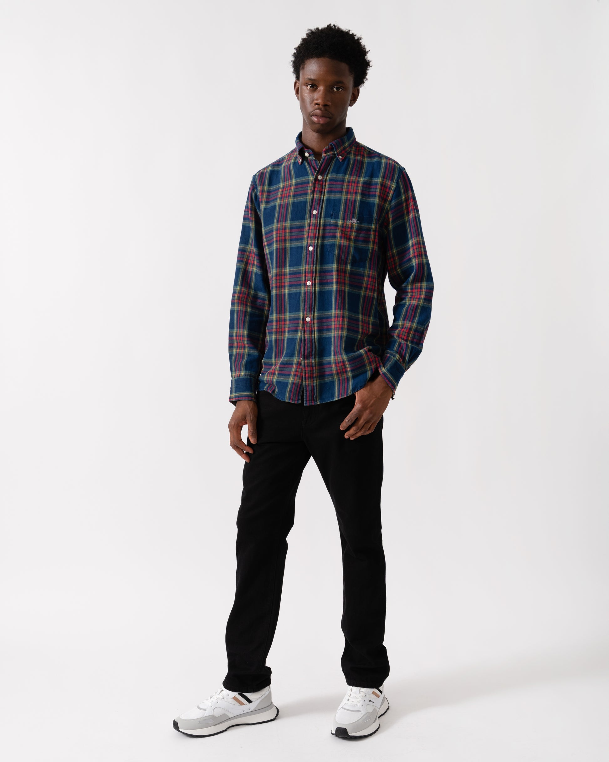 Mens Long Sleeve Indigo Twill Check Shirt - 969 Indigo
