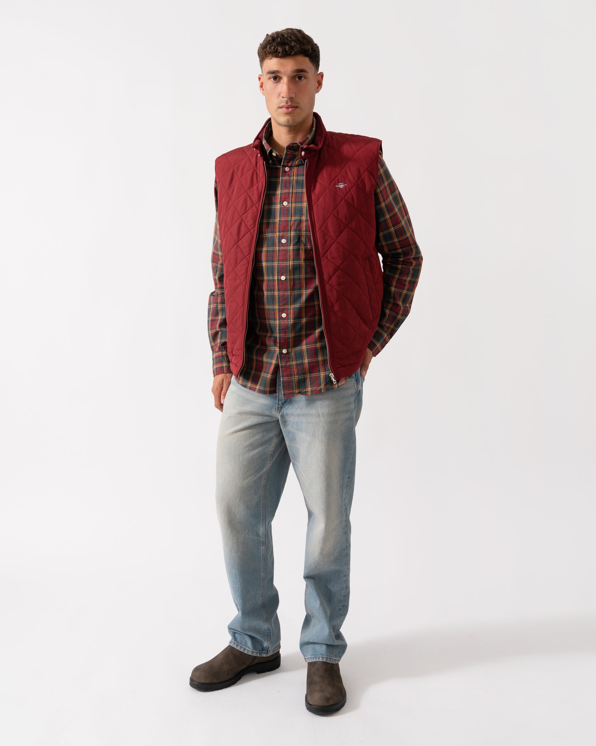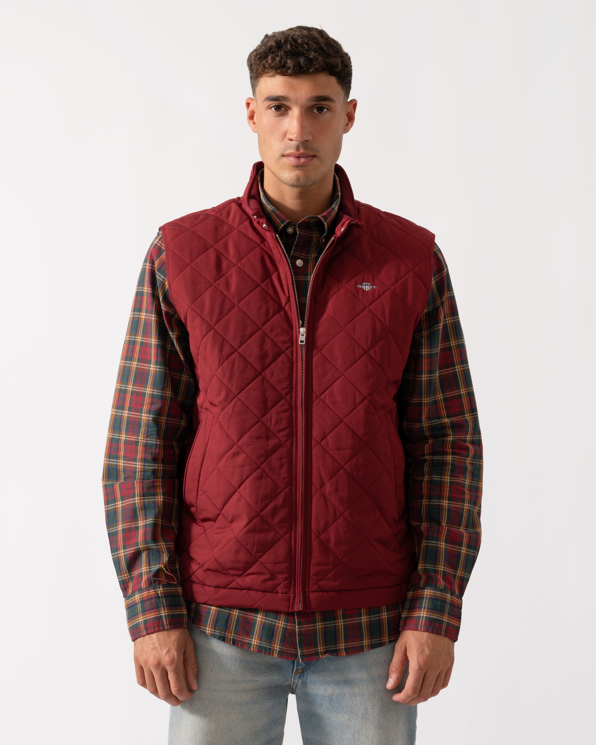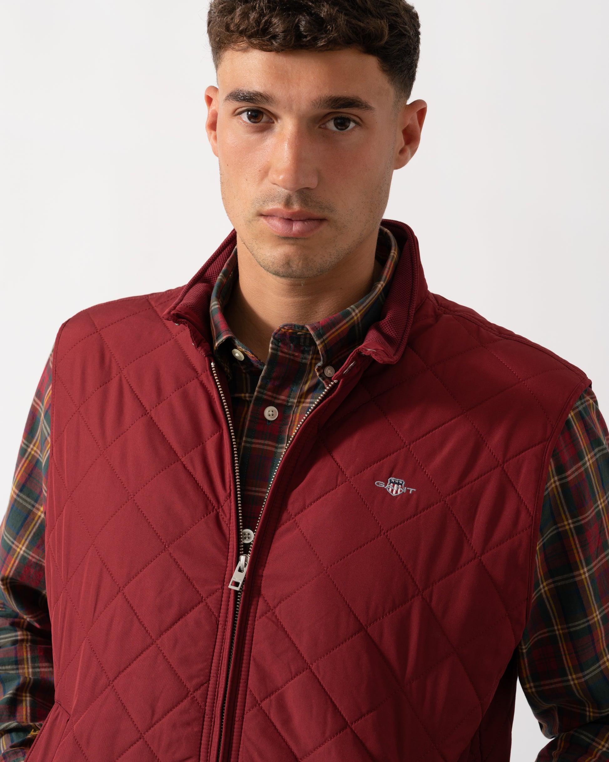 Made with 100% recycled polyester filling, this quilted windcheater vest from GANT is an outerwear essential. Designed to be water-repellent, it features diamond quilting, slanted welt side pockets, a stand collar and an elasticated hem and cuffs with press buttons at the sleeves for an adjustable fit. This jacket is accented with a GANT graphic embroidered at the chest and their signature brand logo embroidered at the back locker loop. The fit is regular and sits just above the hips. This product is made with recycled polyester, aligned with GANT's sustainability strategy to support circularity.