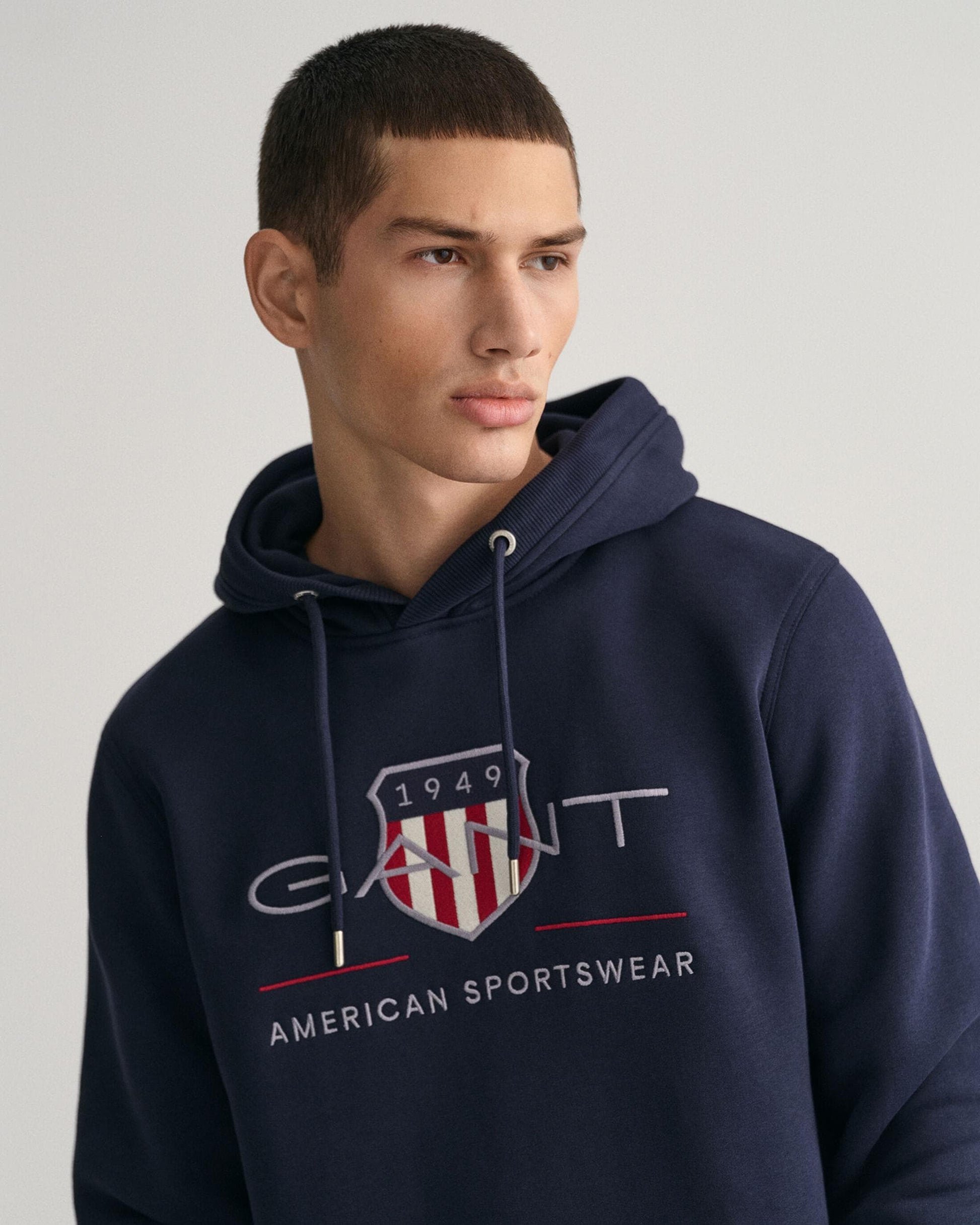 GANT Mens Regular FIt Archive Shield Pullover Hoodie in 433 Evening Blue