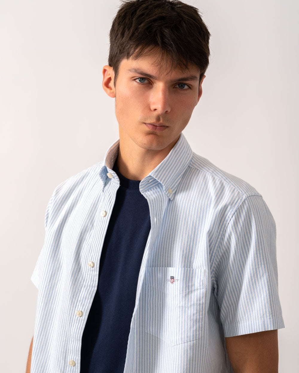 GANT Mens Regular Fit Classic Oxford Stripe Short Sleeve Shirt in 455 Light Blue