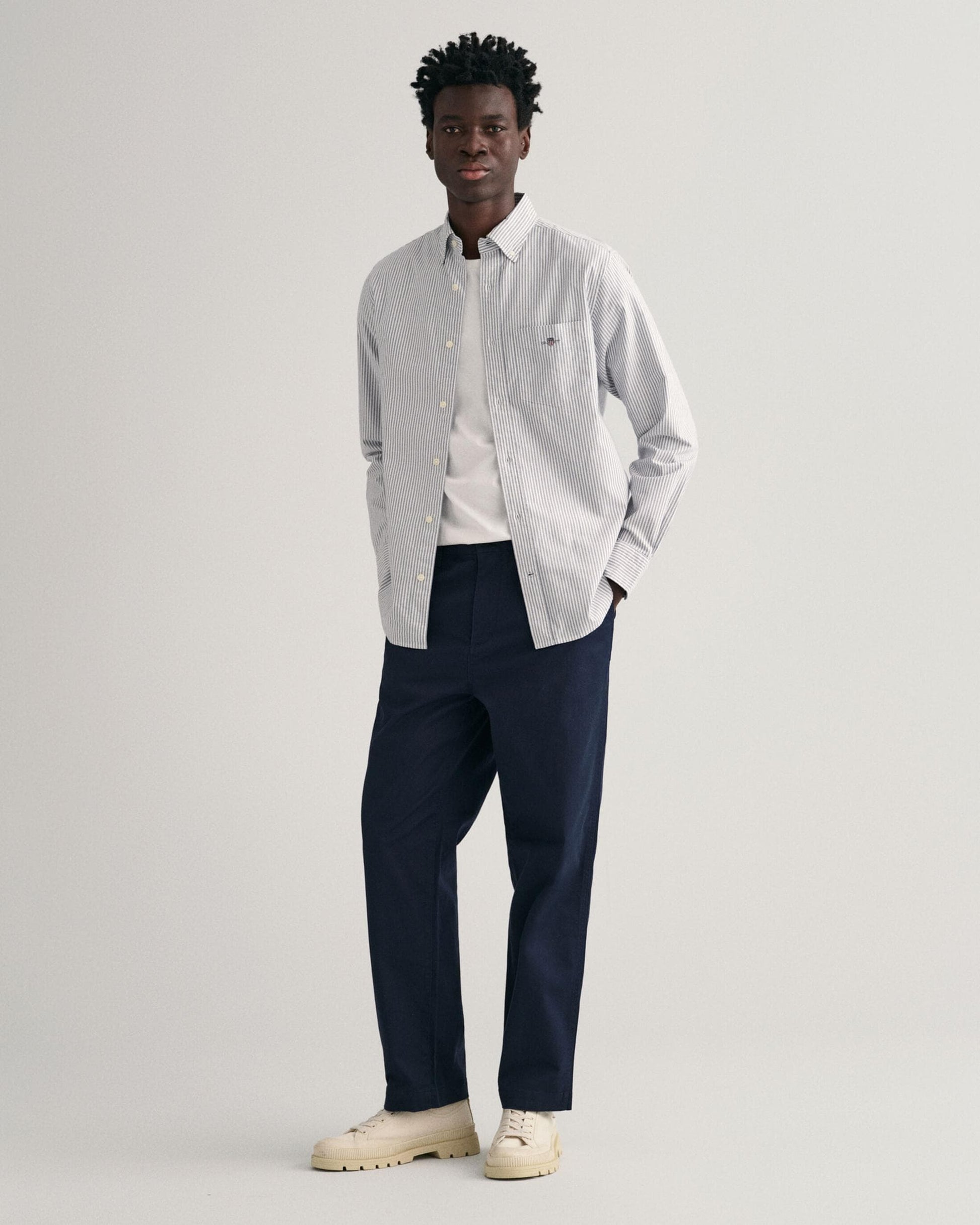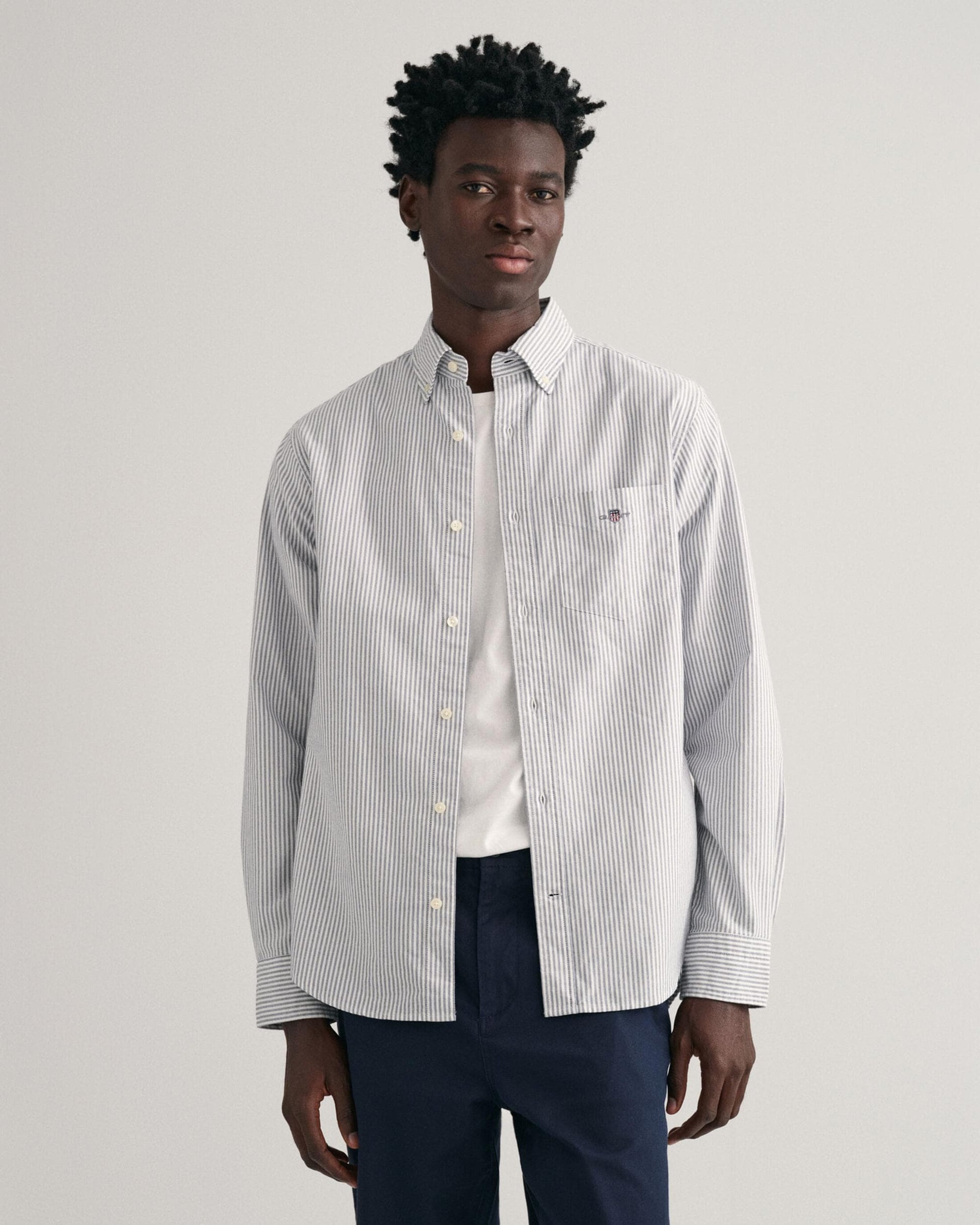 GANT Mens Regular Fit Long Sleeve Oxford Banker Stripe Shirt - 455 Light Blue - 455 Light Blue