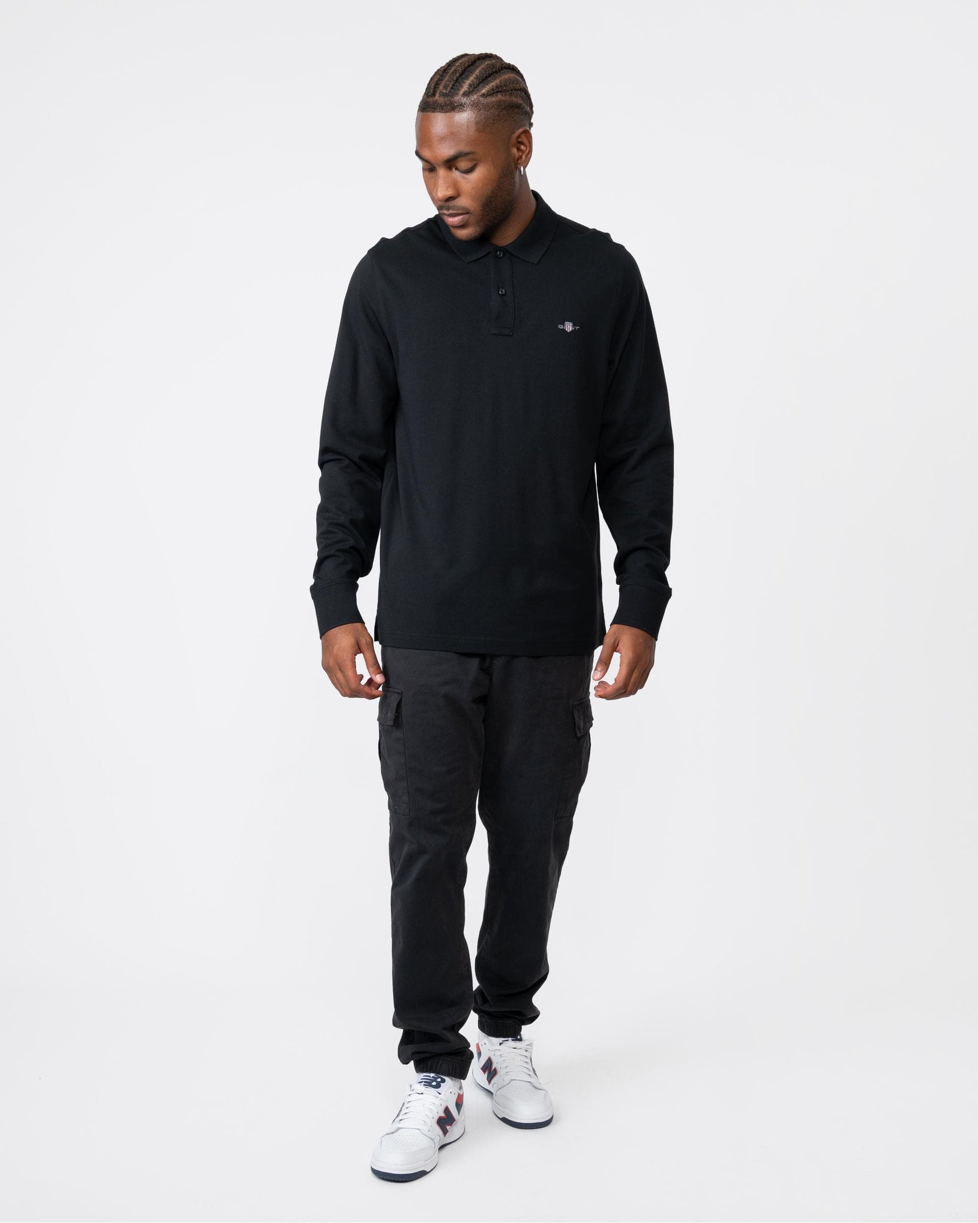 GANT Mens Regular Fit Long Sleeve Shield Logo Pique Rugger in 5 Black