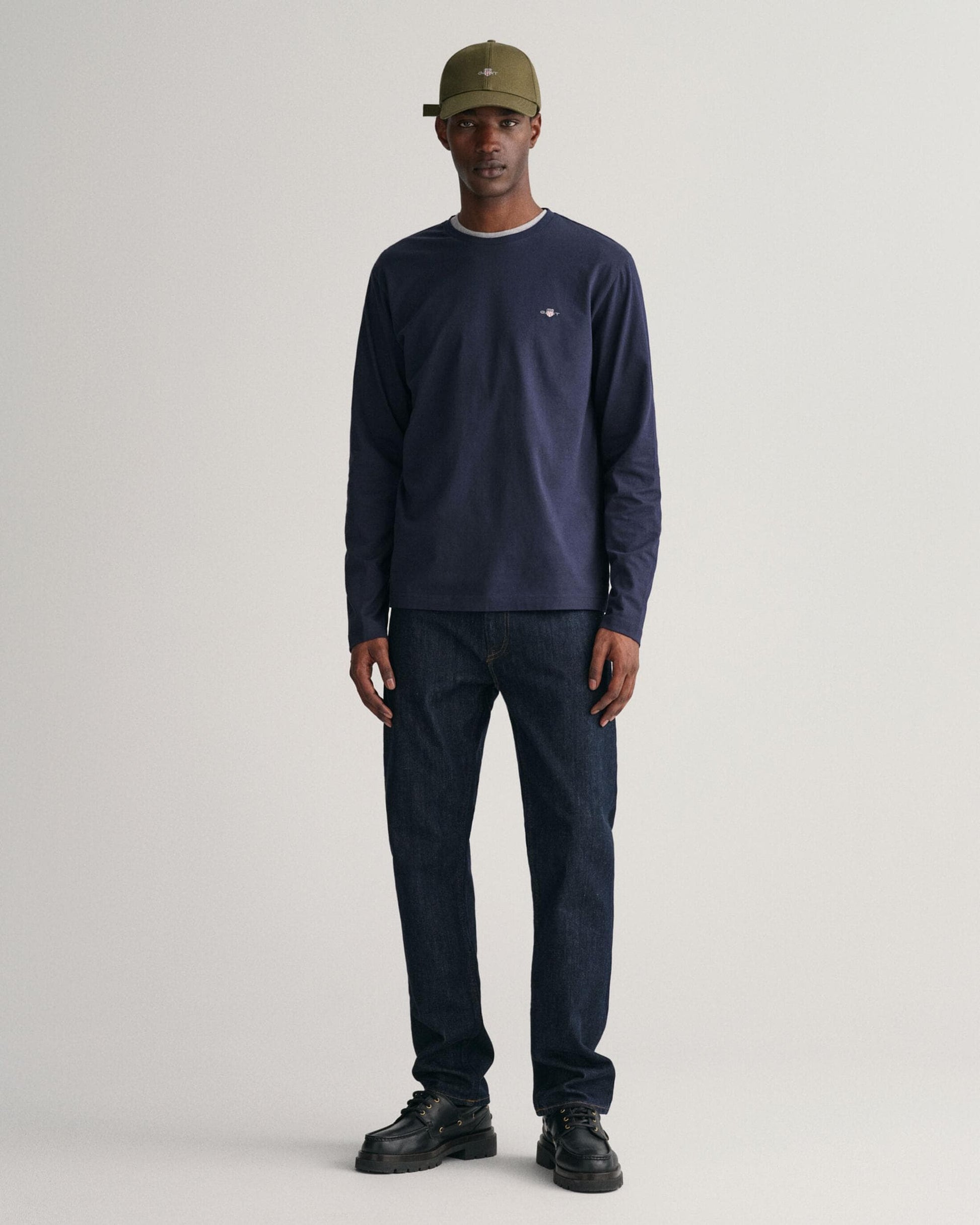 GANT Mens Regular Fit Long Sleeve Shield Logo T-Shirt in 433 Evening Blue