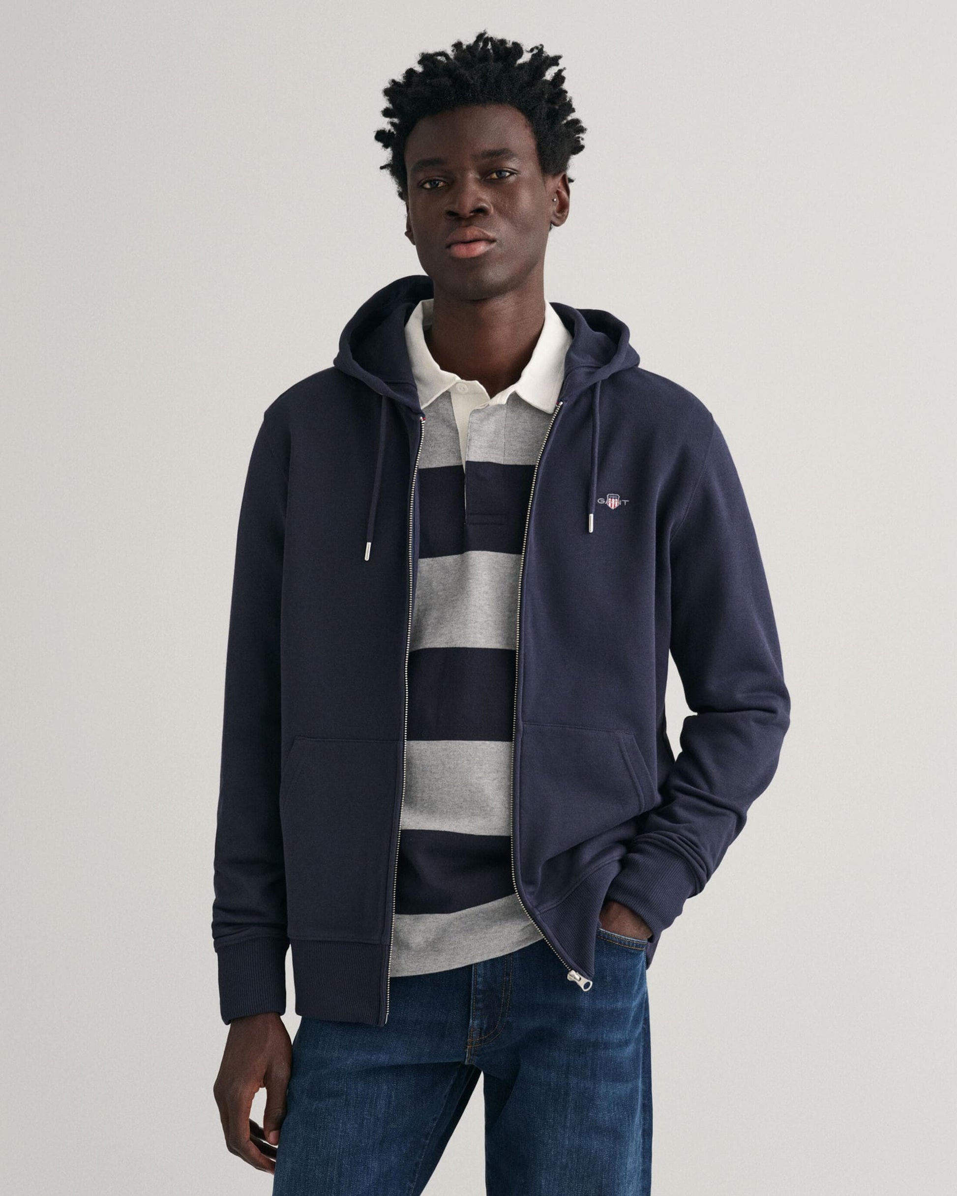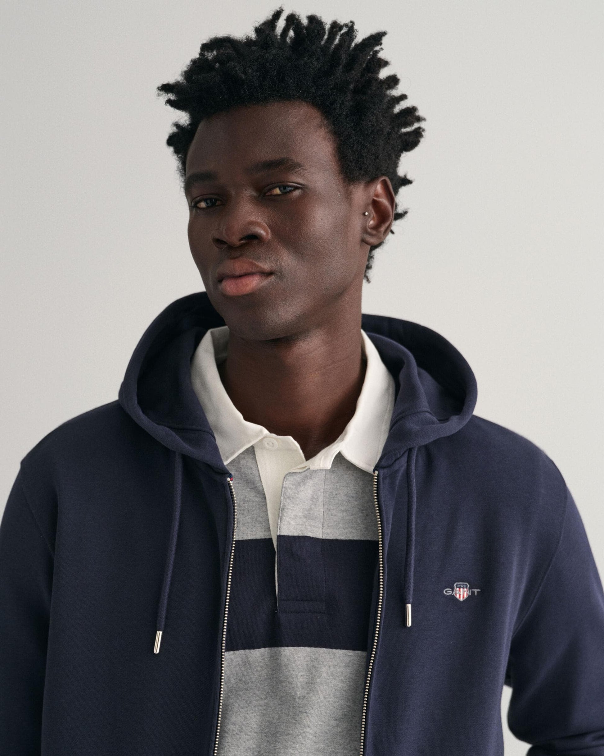 GANT Mens Regular Fit Shield Logo Full Zip Hoodie in 433 Evening Blue