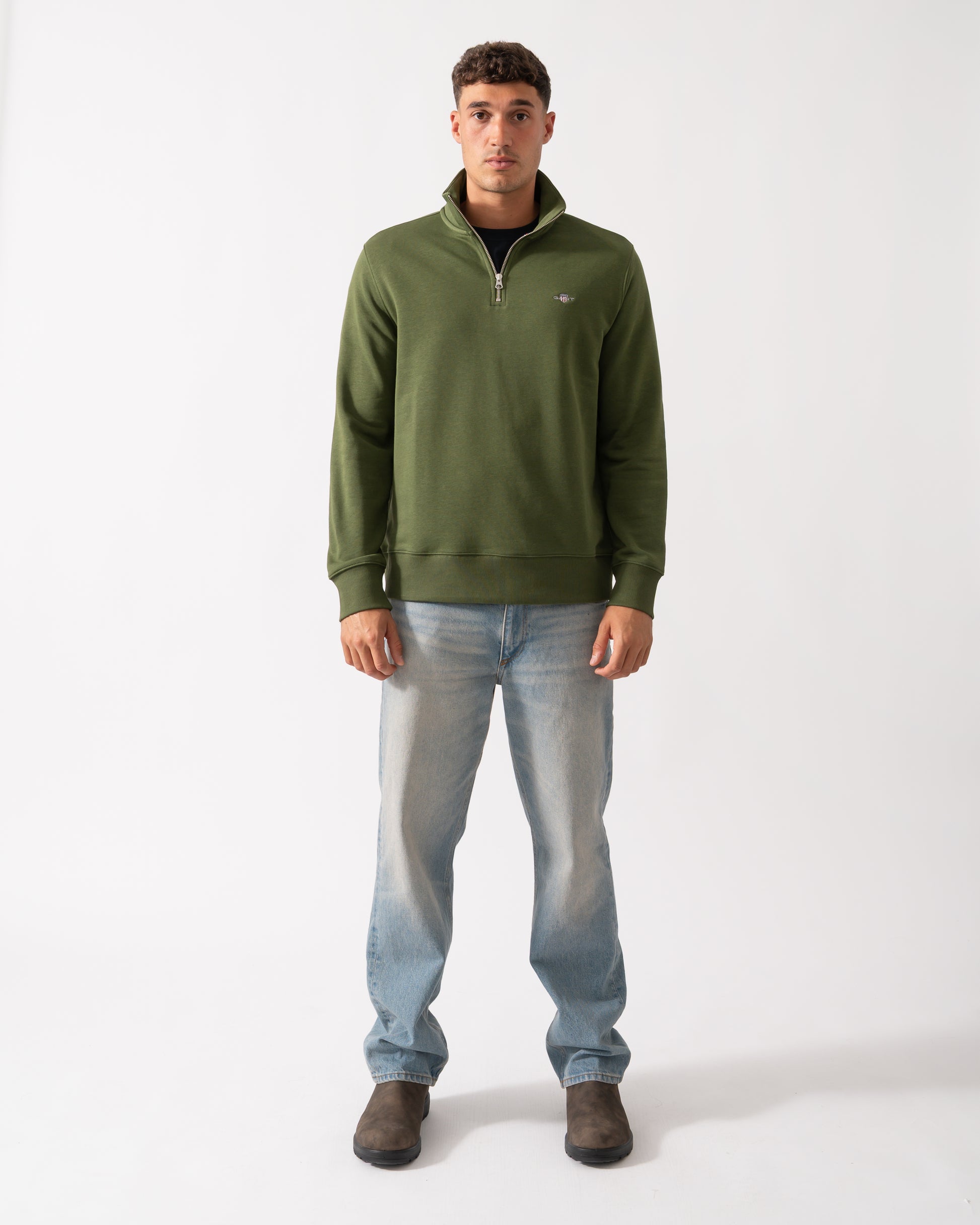 GANT Mens Regular Fit Shield Logo Half Zip Sweatshirt - 303 Moss Green - 303 Moss Green
