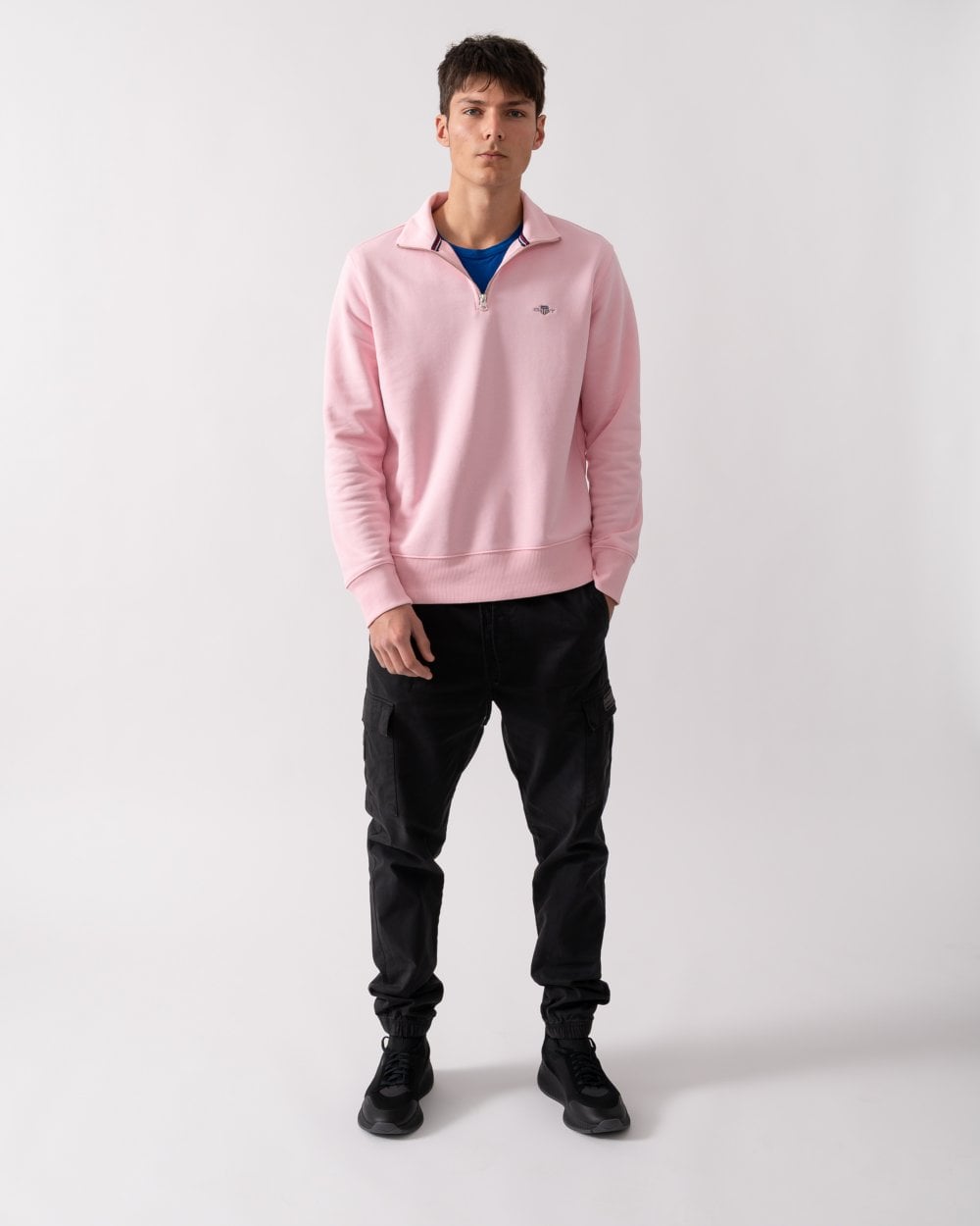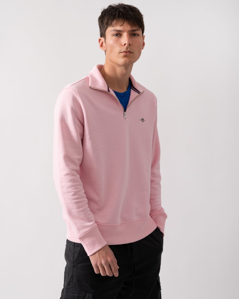 GANT Mens Regular Fit Shield Logo Half Zip Sweatshirt - 457 Fresh Blue - 457 Fresh Blue