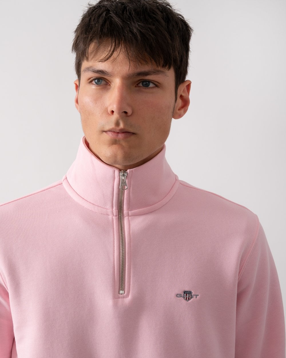 GANT Mens Regular Fit Shield Logo Half Zip Sweatshirt in 637 California Pink