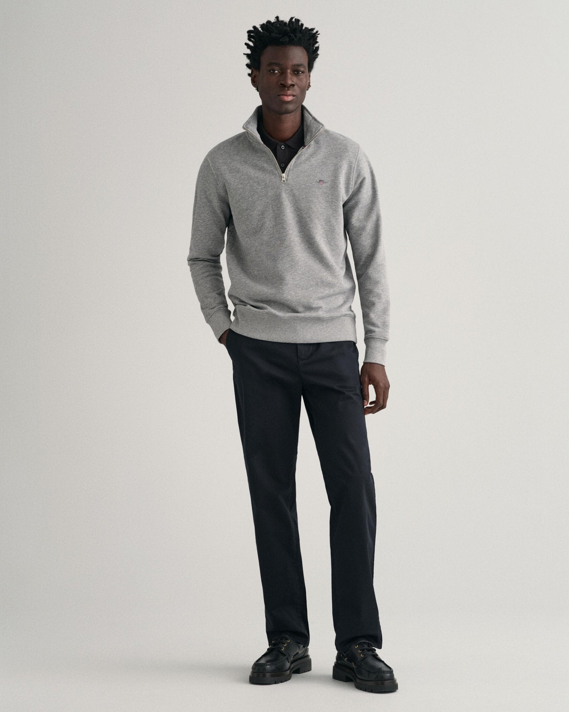 GANT Mens Regular Fit Shield Logo Half Zip Sweatshirt NOS in 93 Grey Melange