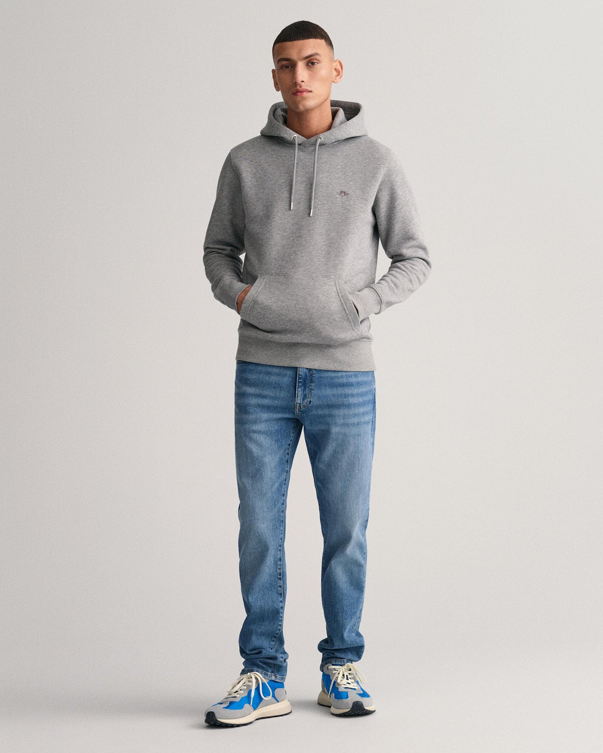 GANT Mens Regular Fit Shield Logo Pullover Hoodie in 93 Grey Melange