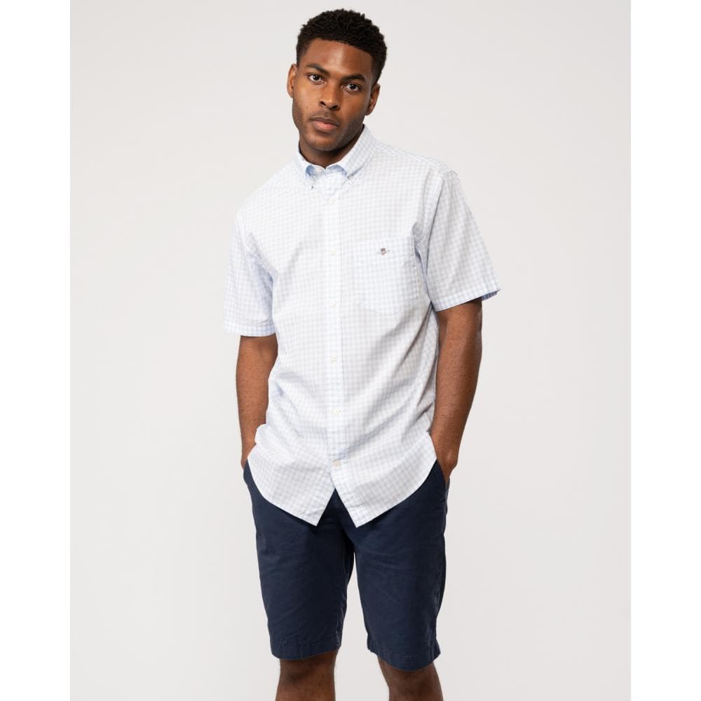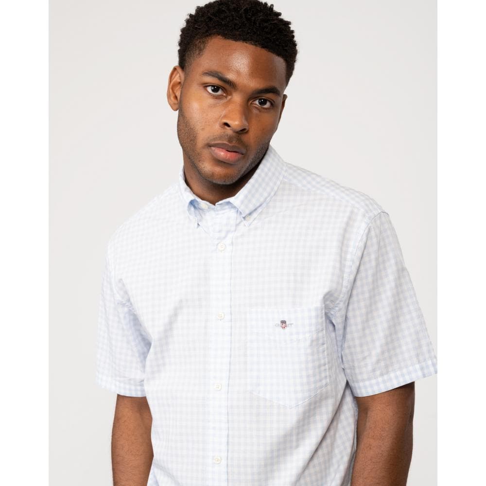 GANT Mens Regular Fit Short Sleeve Poplin Gingham Shirt in 455 Light Blue