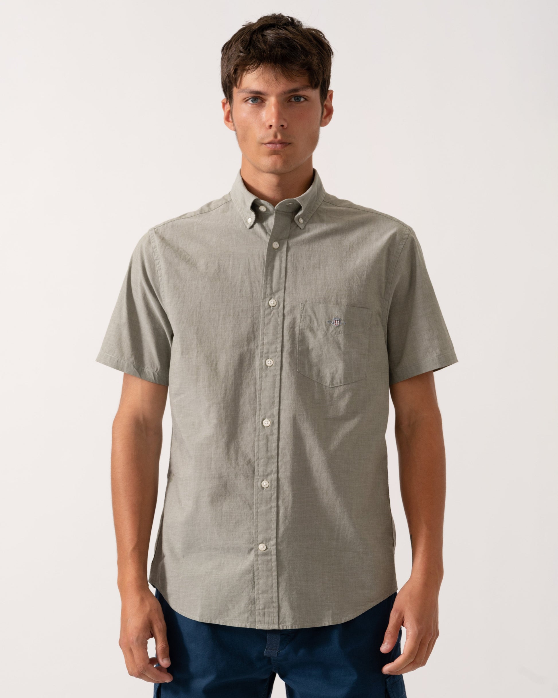 GANT Mens Regular Fit Short Sleeve Poplin Shirt in 303 Moss Green