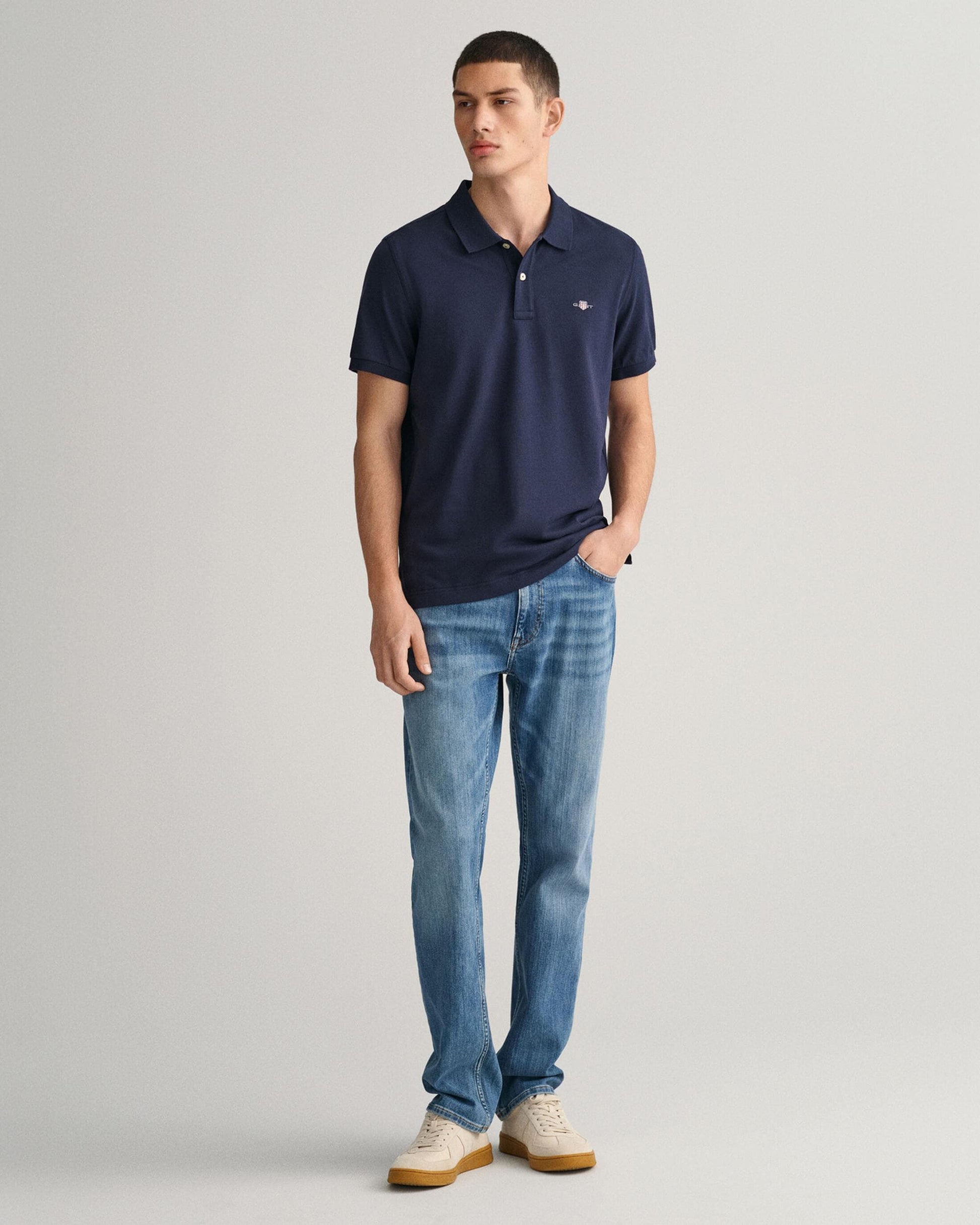 GANT Mens Regular Fit Short Sleeve Shield Logo Pique Polo NOS in 433 Evening Blue