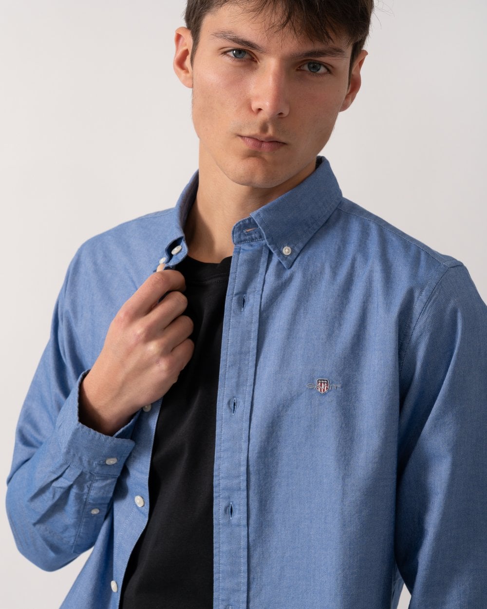 GANT Mens Slim Fit Long Sleeve Oxford Shirt - 423 Persian Blue - 423 Persian Blue