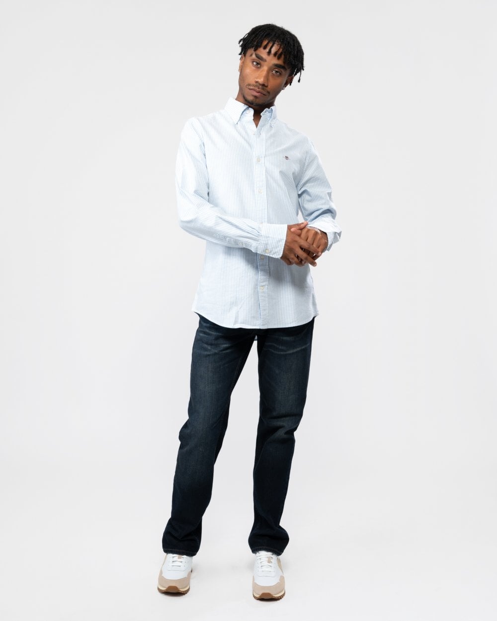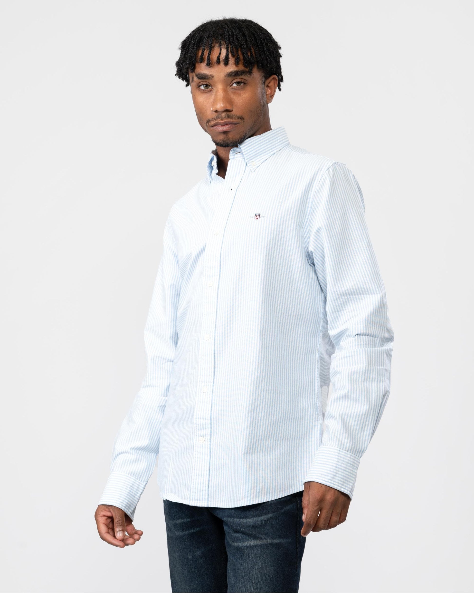 GANT Mens Slim Fit Oxford Banker Stripe Shirt in 455 Light Blue