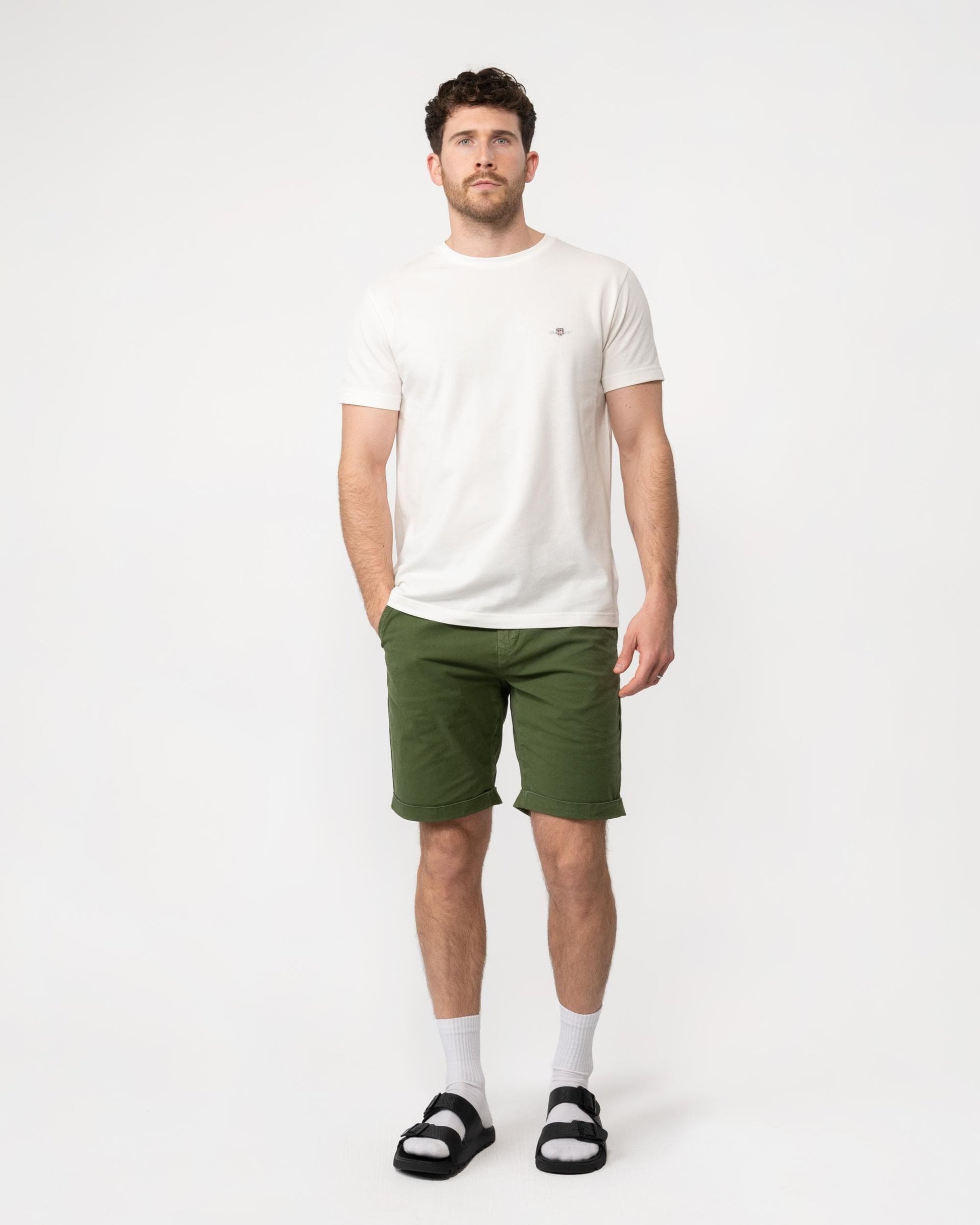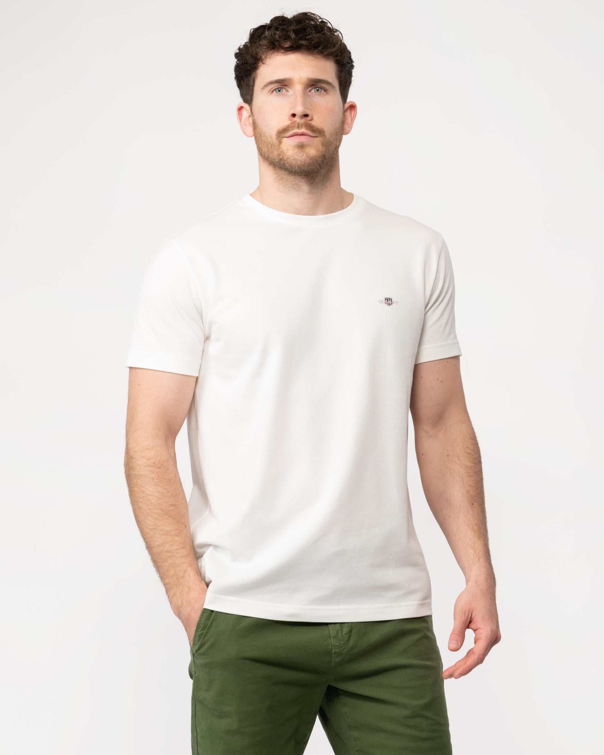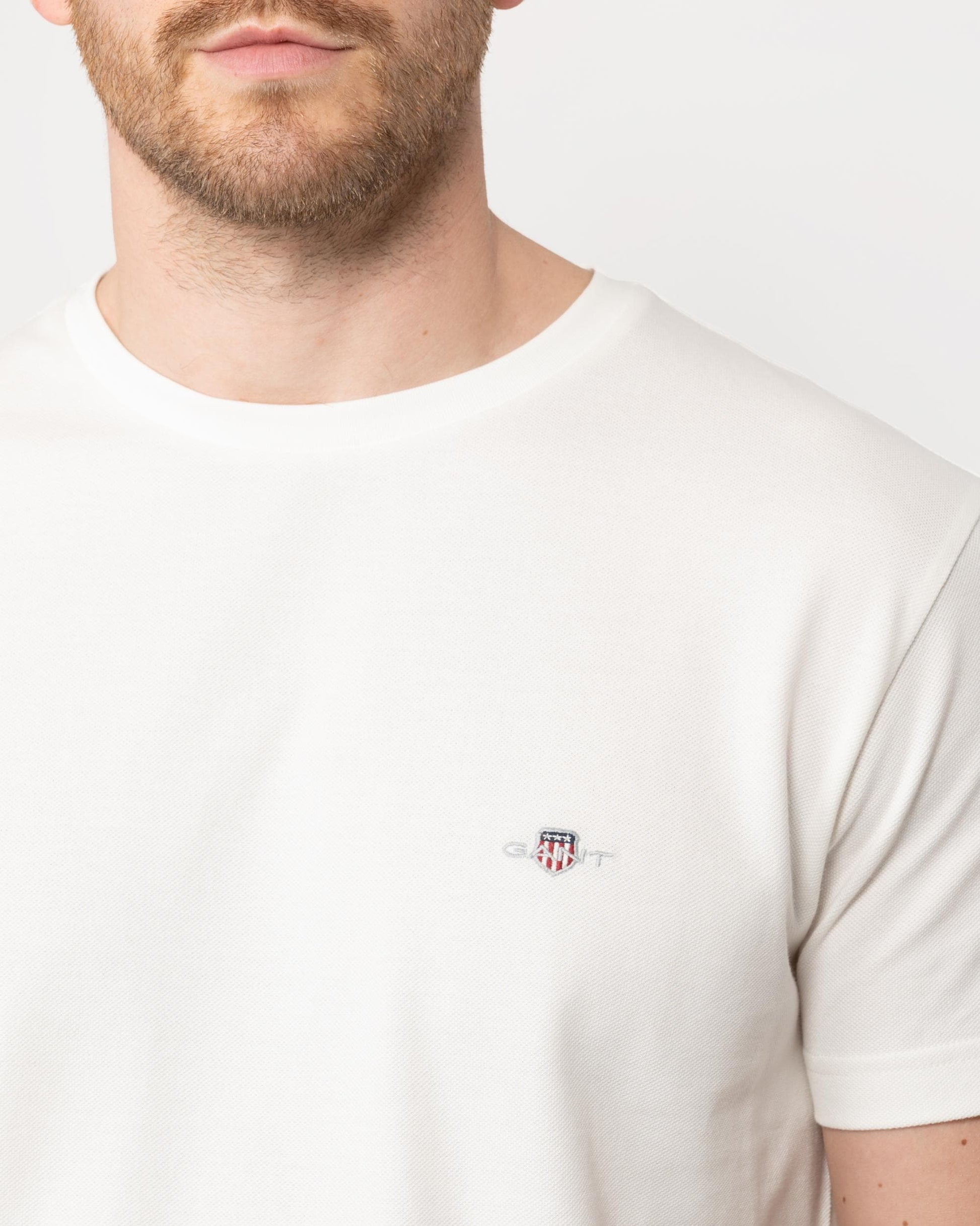 GANT Mens Slim Pique Short Sleeve T-Shirt in 113 Eggshell