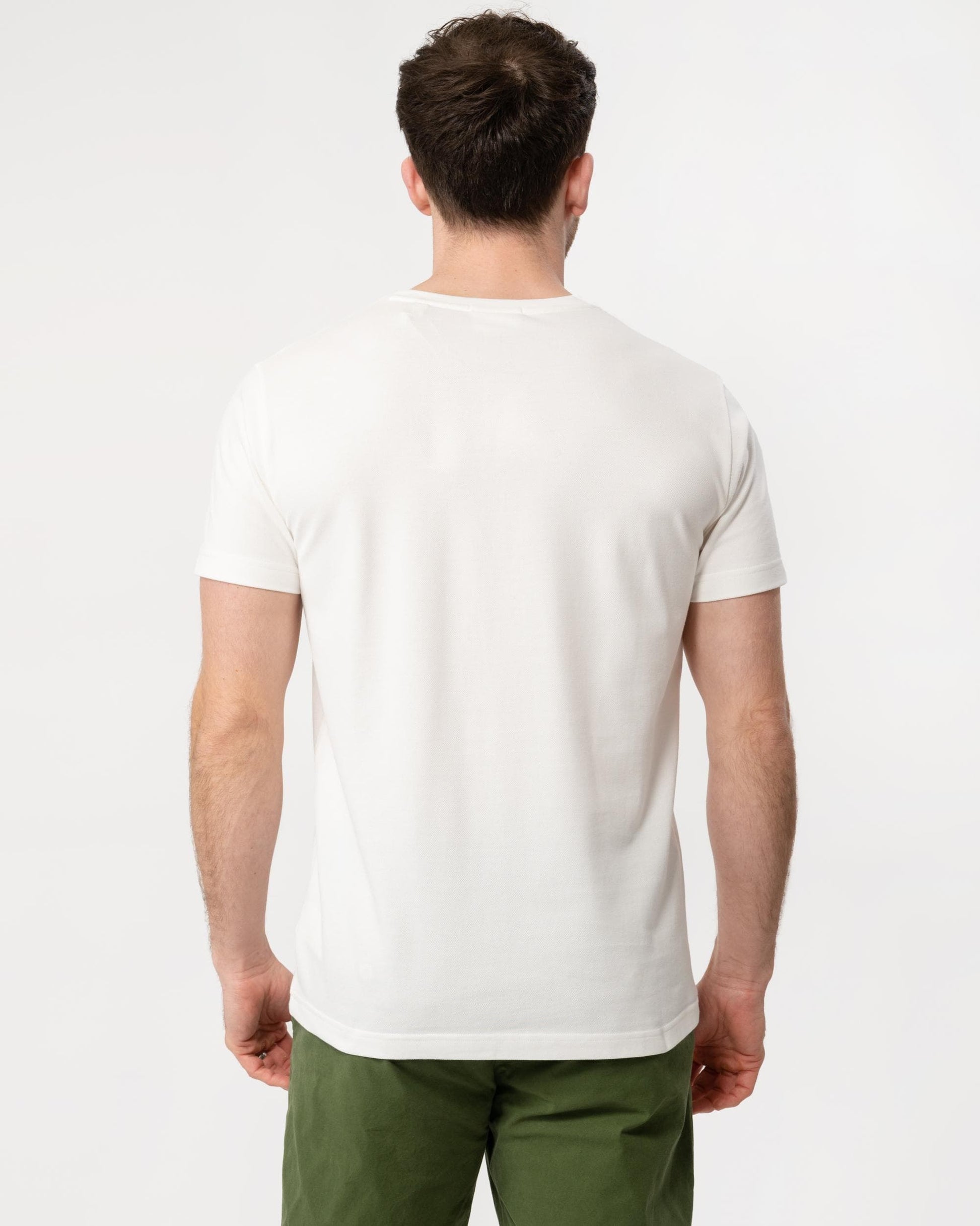 Mens Slim Pique Short Sleeve T-Shirt - 113 Eggshell