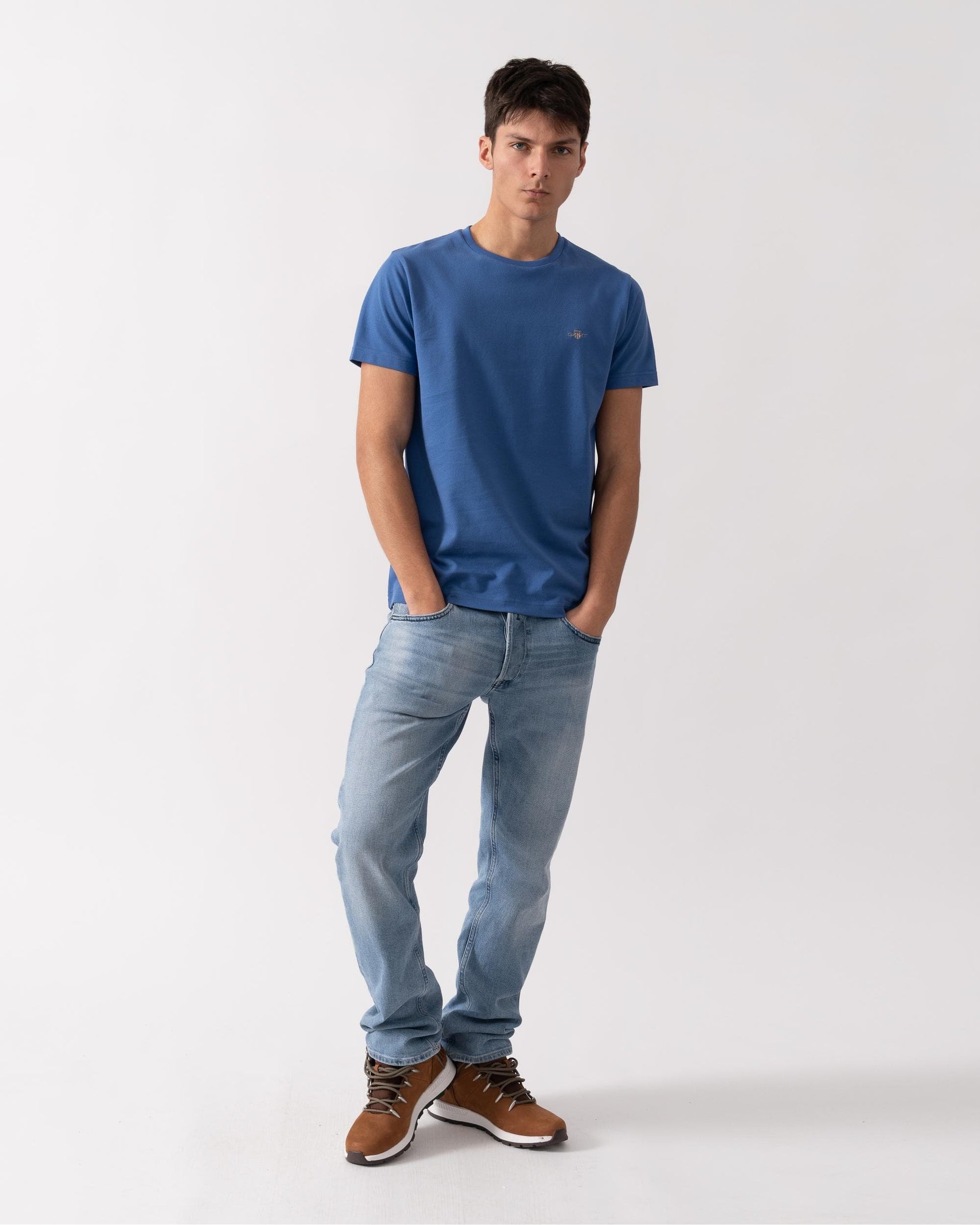 GANT Mens Slim Pique Short Sleeve T-Shirt - 433 Evening Blue - 433 Evening Blue