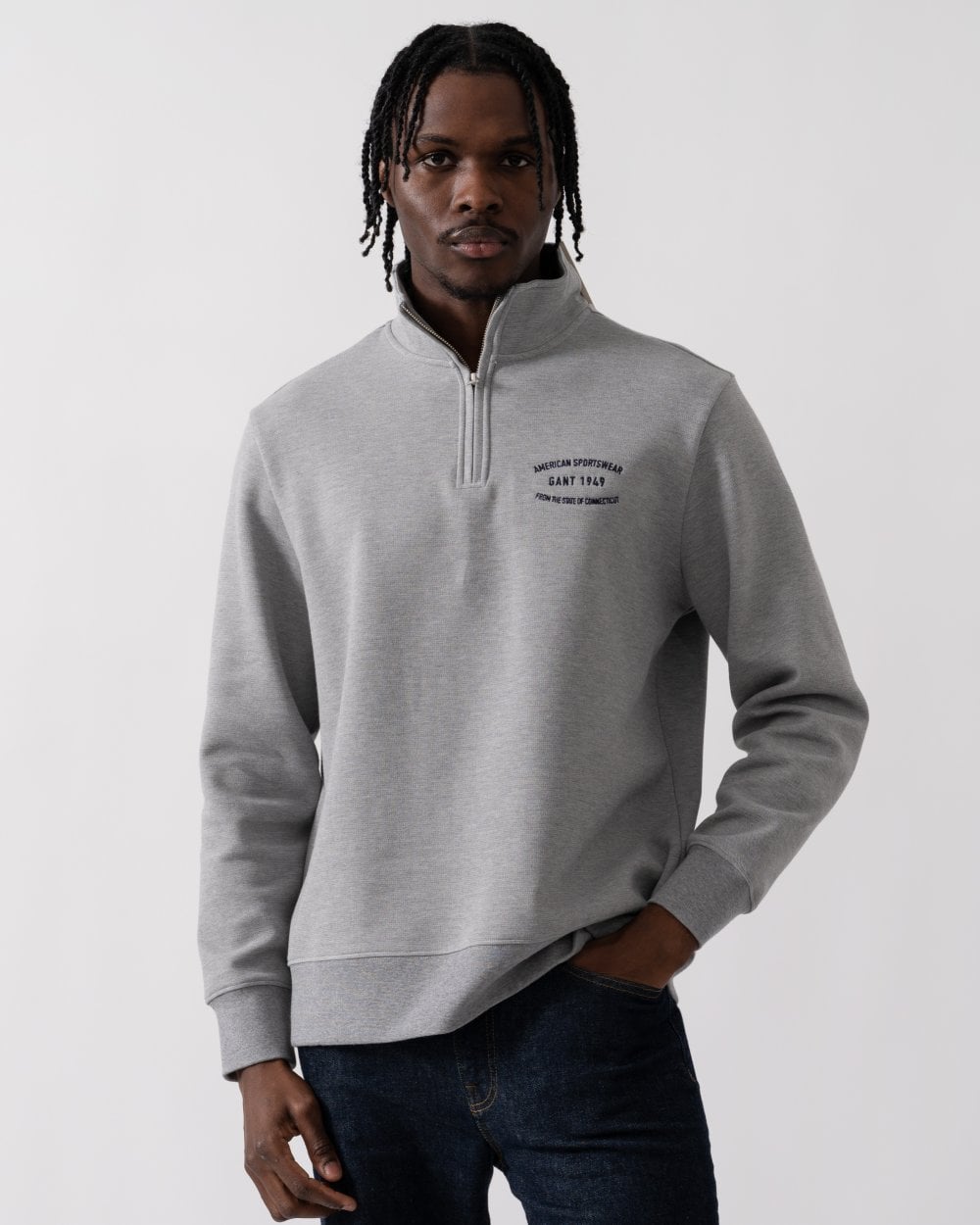 GANT Mens Small Graphic Sweat Half Zip in 93 Grey Melange