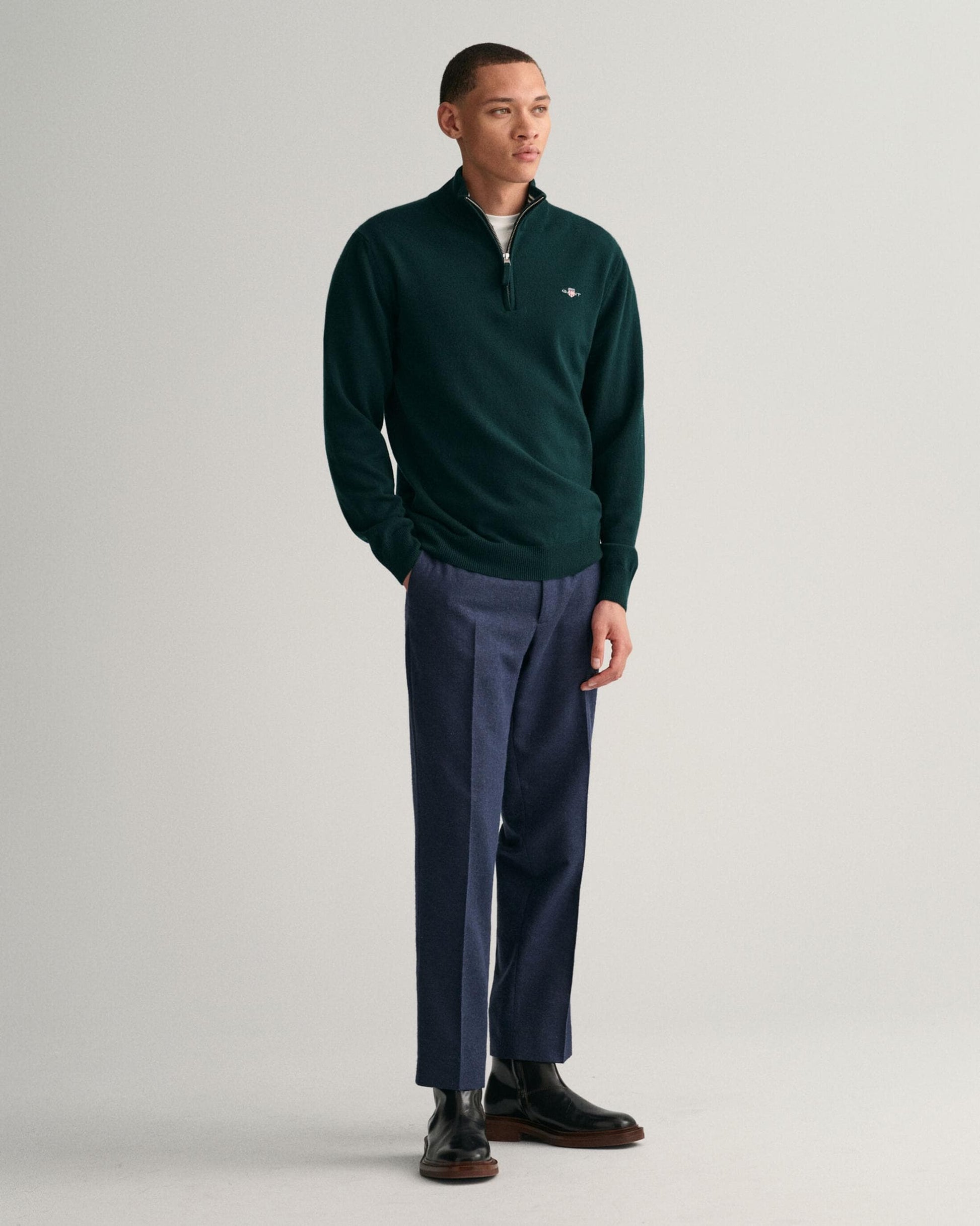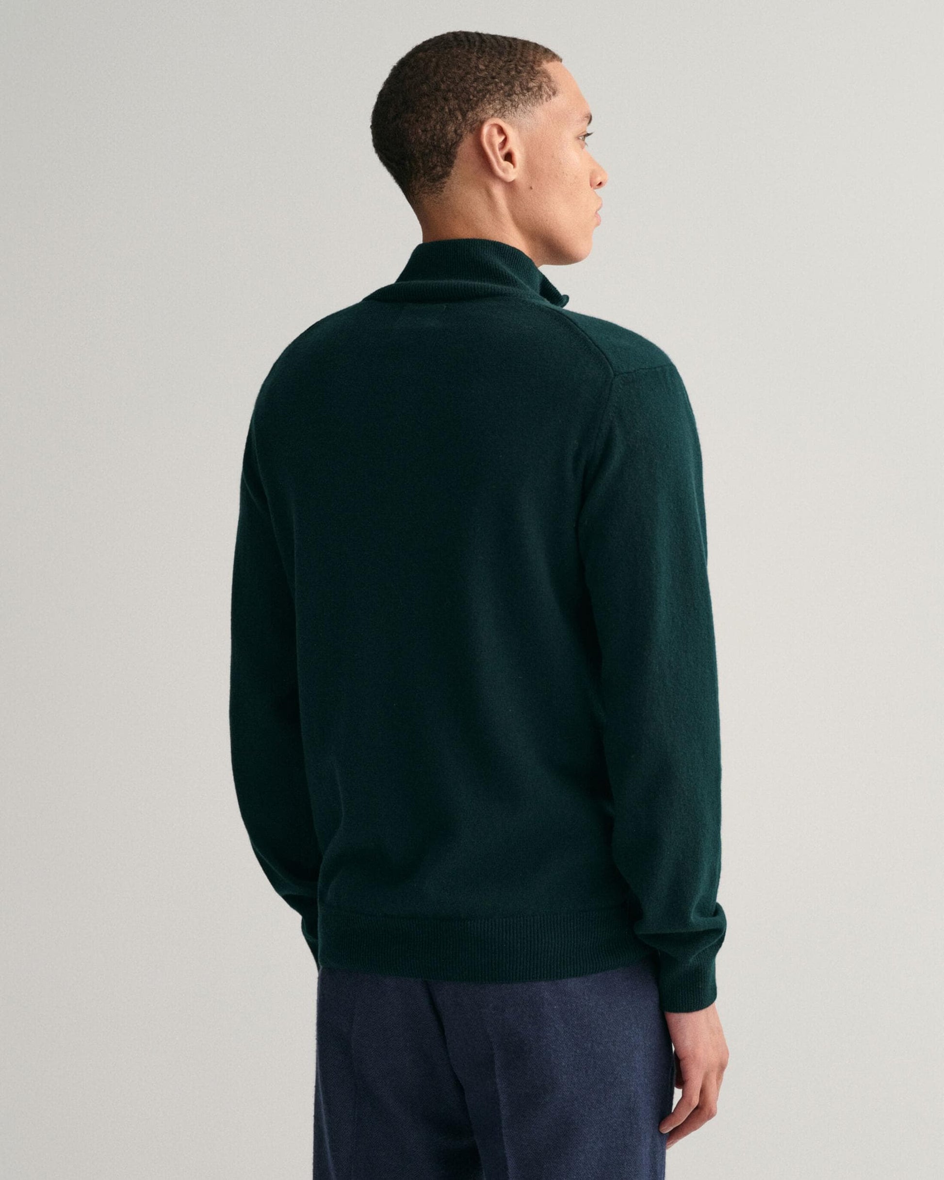 GANT Mens Superfine Lambswool Half Zip Cardigan in 374 Tartan Green