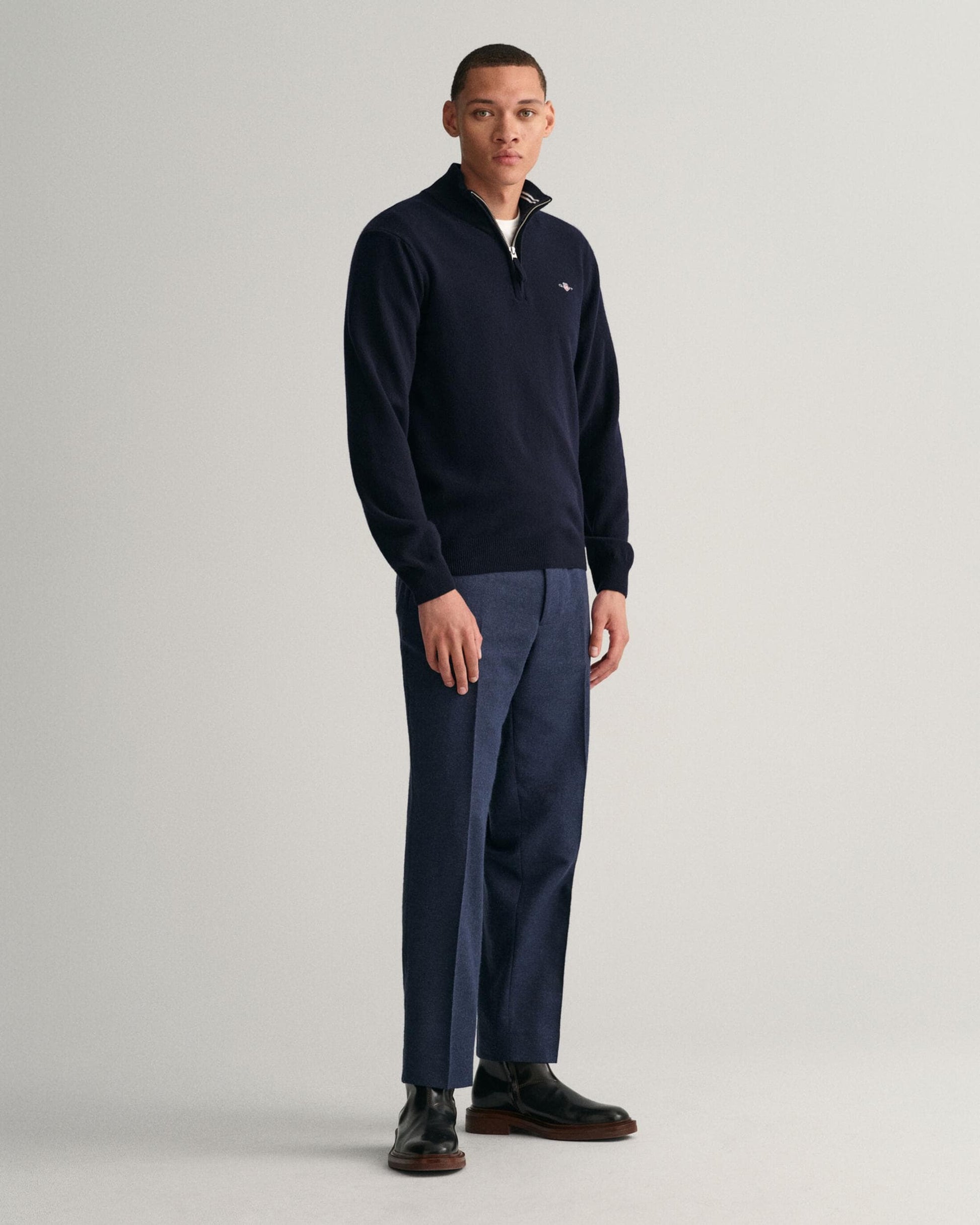 GANT Mens Superfine Lambswool Half Zip Cardigan in 410 Marine