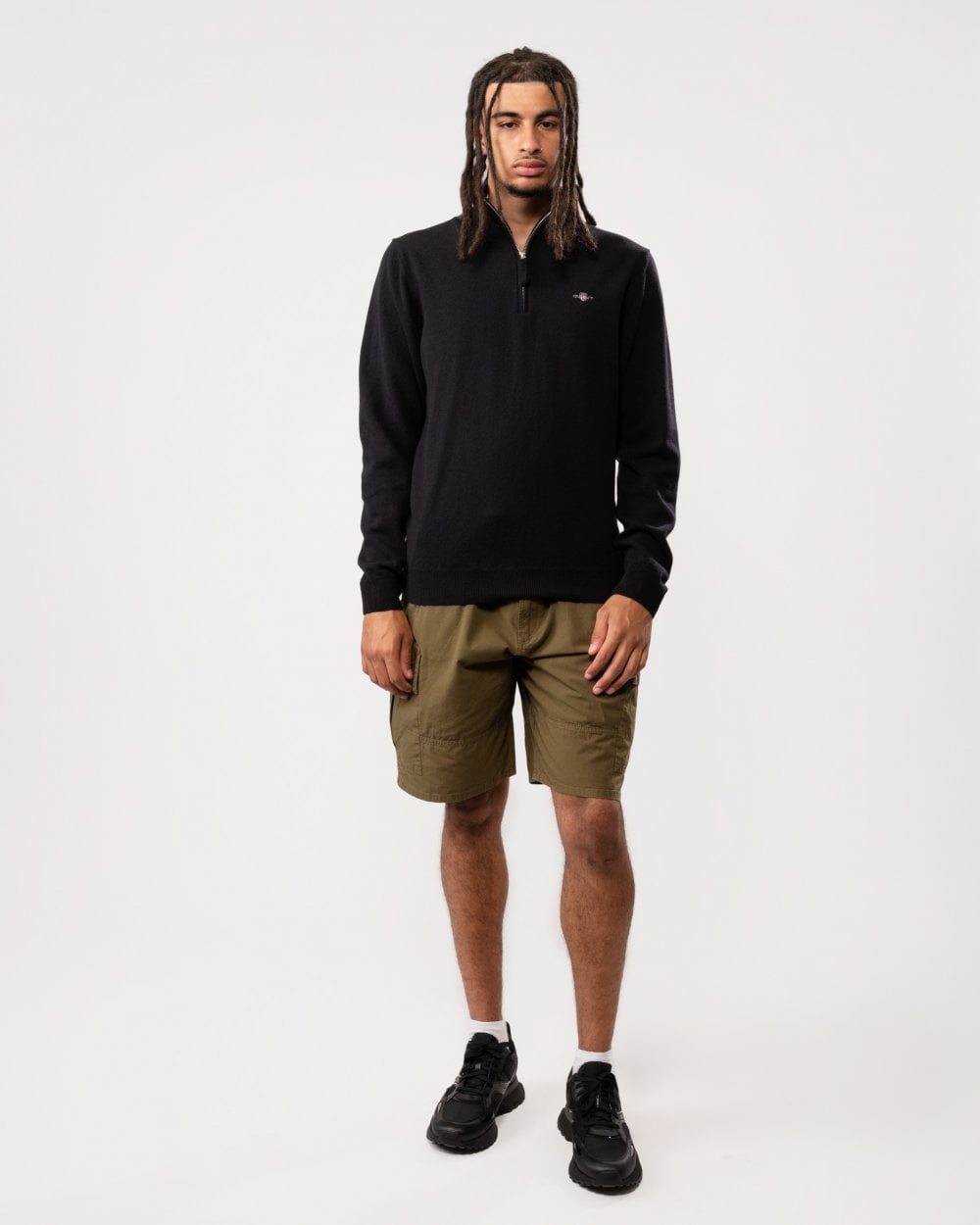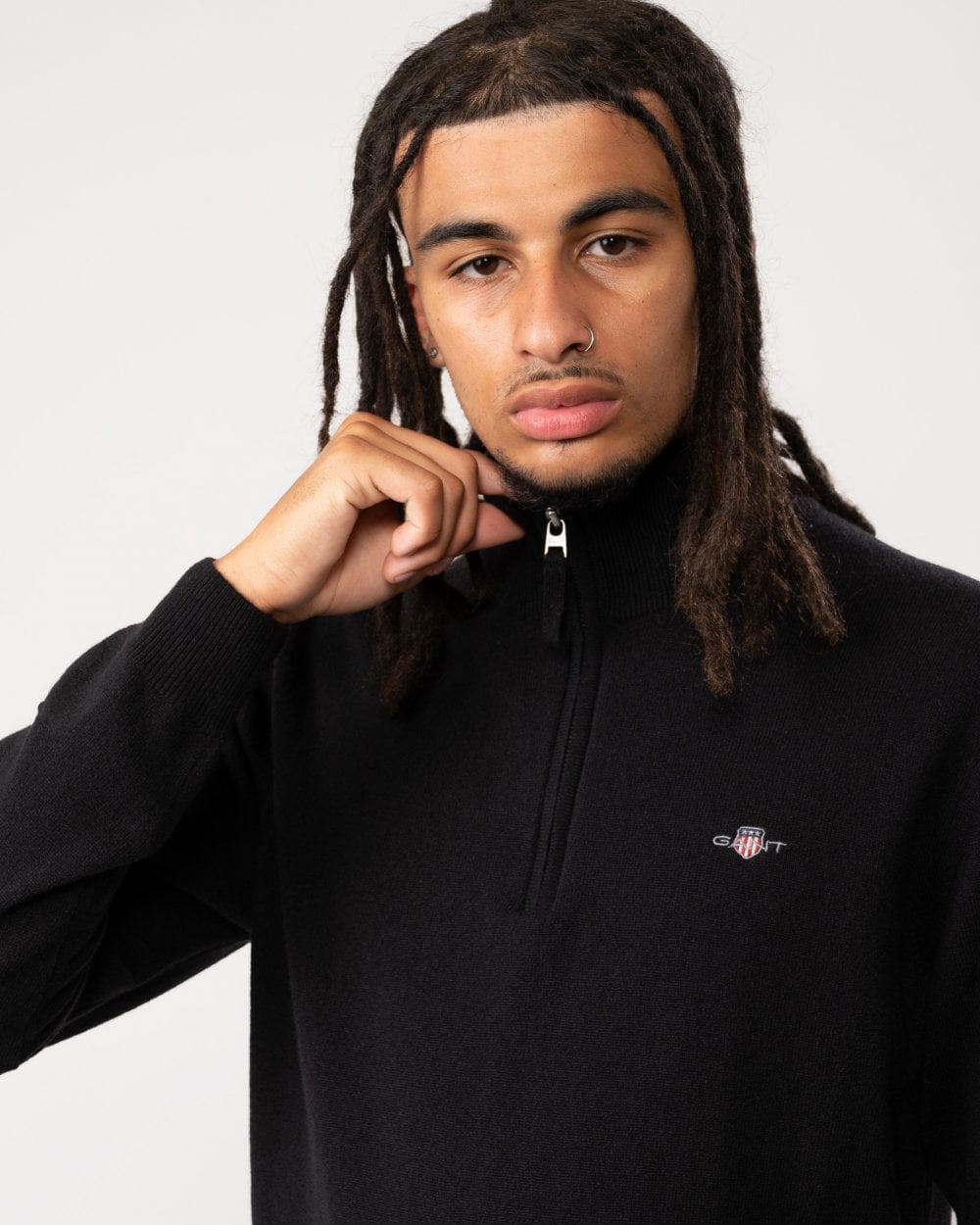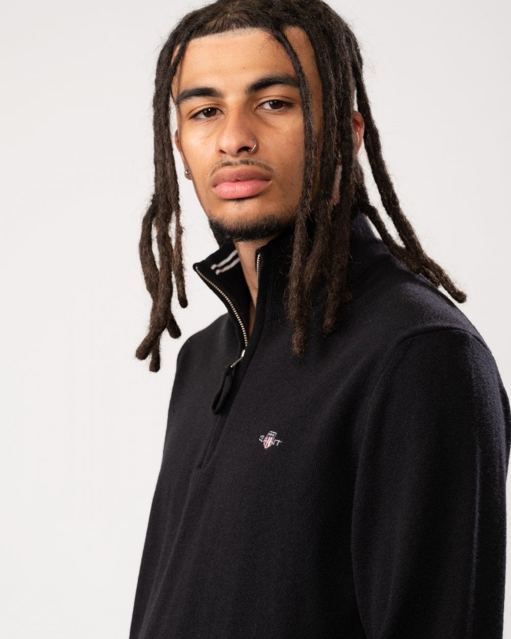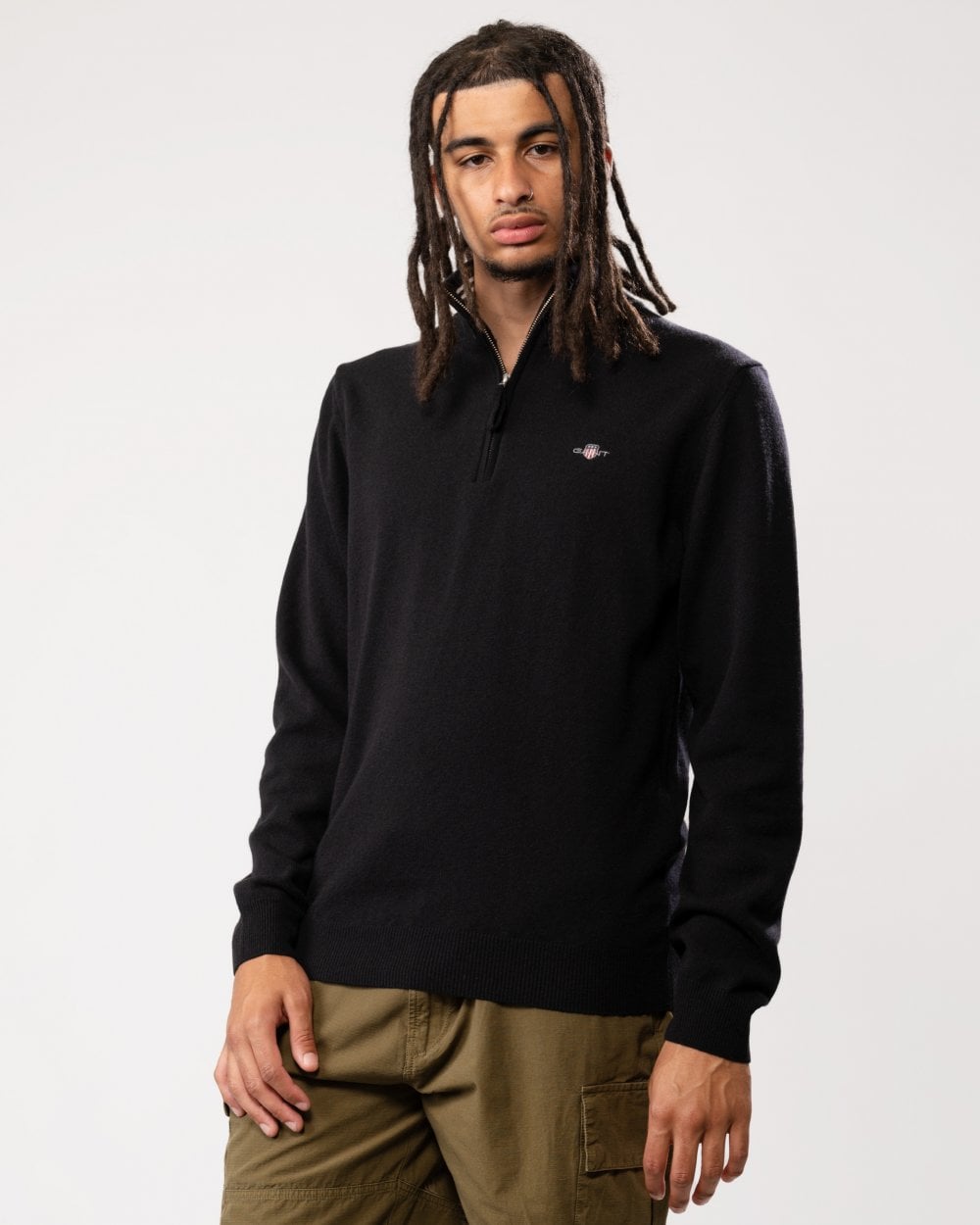 GANT Mens Superfine Lambswool Half Zip Cardigan in 5 Black
